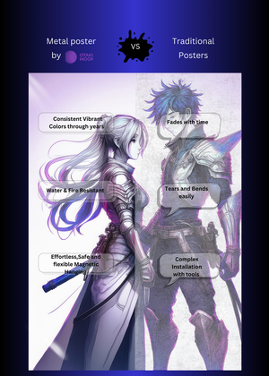 At Otaku Moon, we blend cutting-edge innovation with centuries-old Japanese craftsmanship to create metal wall posters that are as durable as they are breathtaking. Designed for art lovers who demand vibrancy, versatility, and longevity, our posters are handmade using futuristic techniques to deliver superior color contrast, remarkable detail, and a glossy finish that brings every artwork to life.