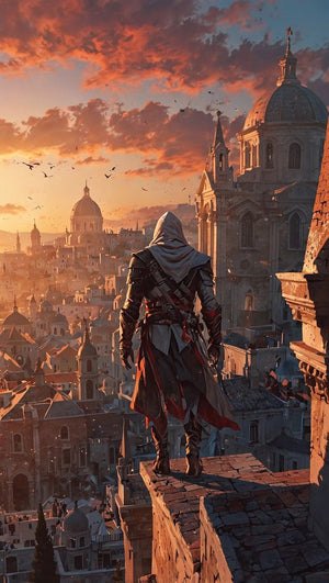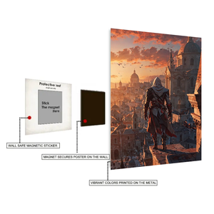 Assassin_s creed Ezio on top Metal Posters | Premium, Waterproof & Magnet-Mounted Art