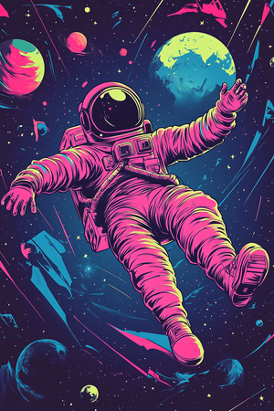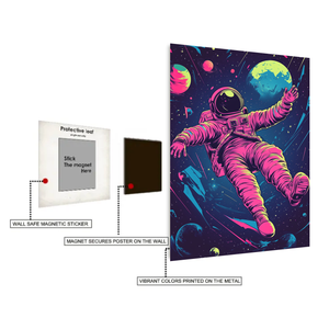 Astronaut floating in space Illustration Metal Wall Posters | Premium, Waterproof & Magnet-Mounted Art