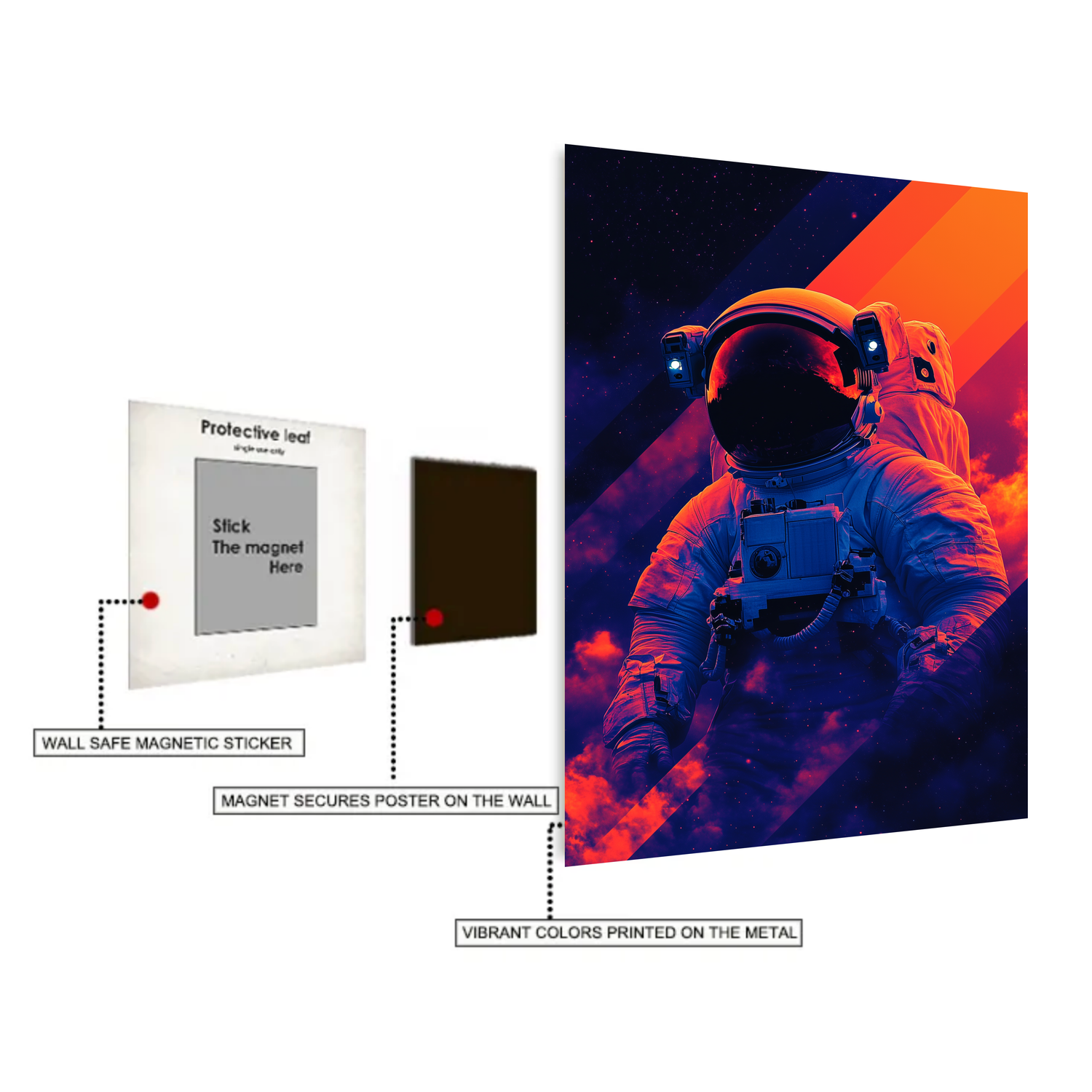 Astronaut in space Metal Wall Posters | Premium, Waterproof & Magnet-Mounted Art