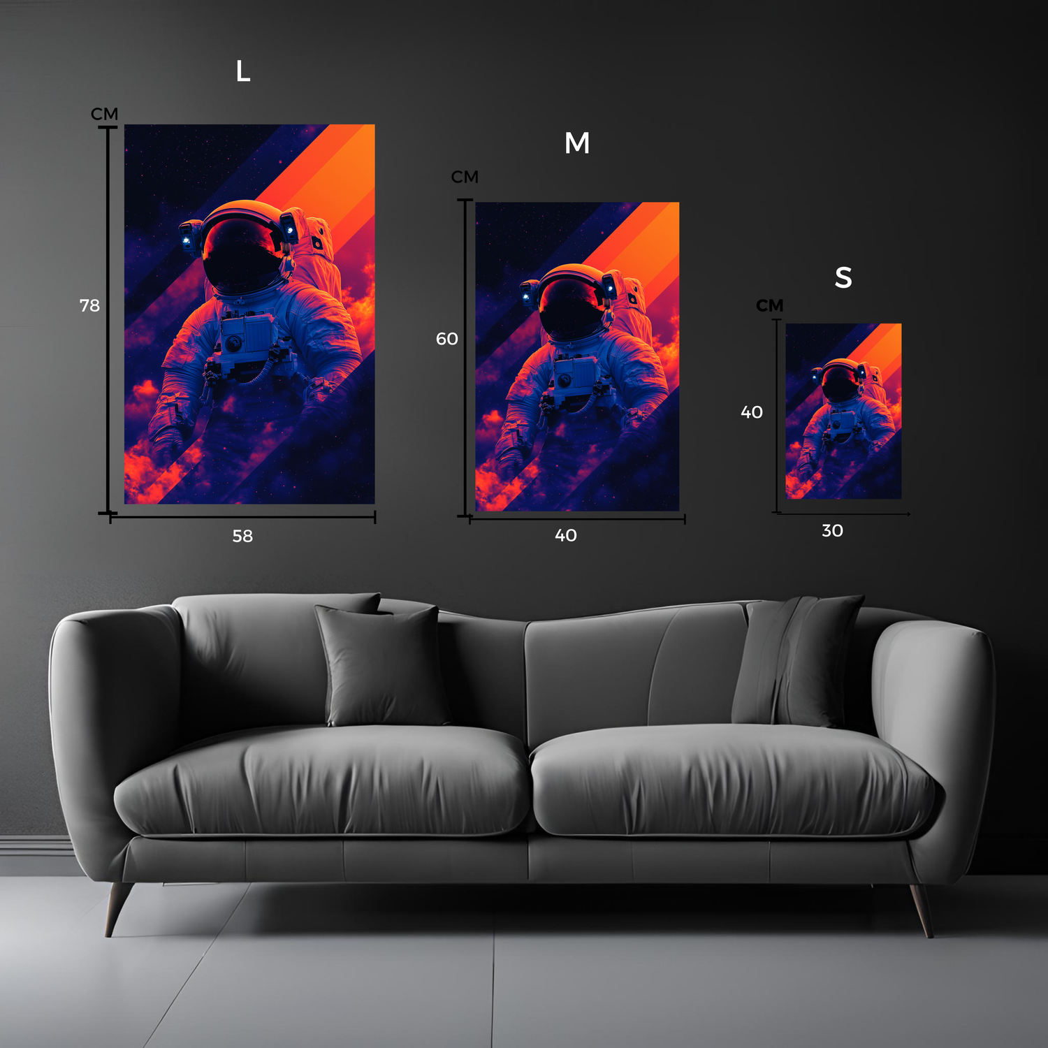 Small 30x40 cm, Medium 40 x 60 cm, Large: 58 x 78 cm |