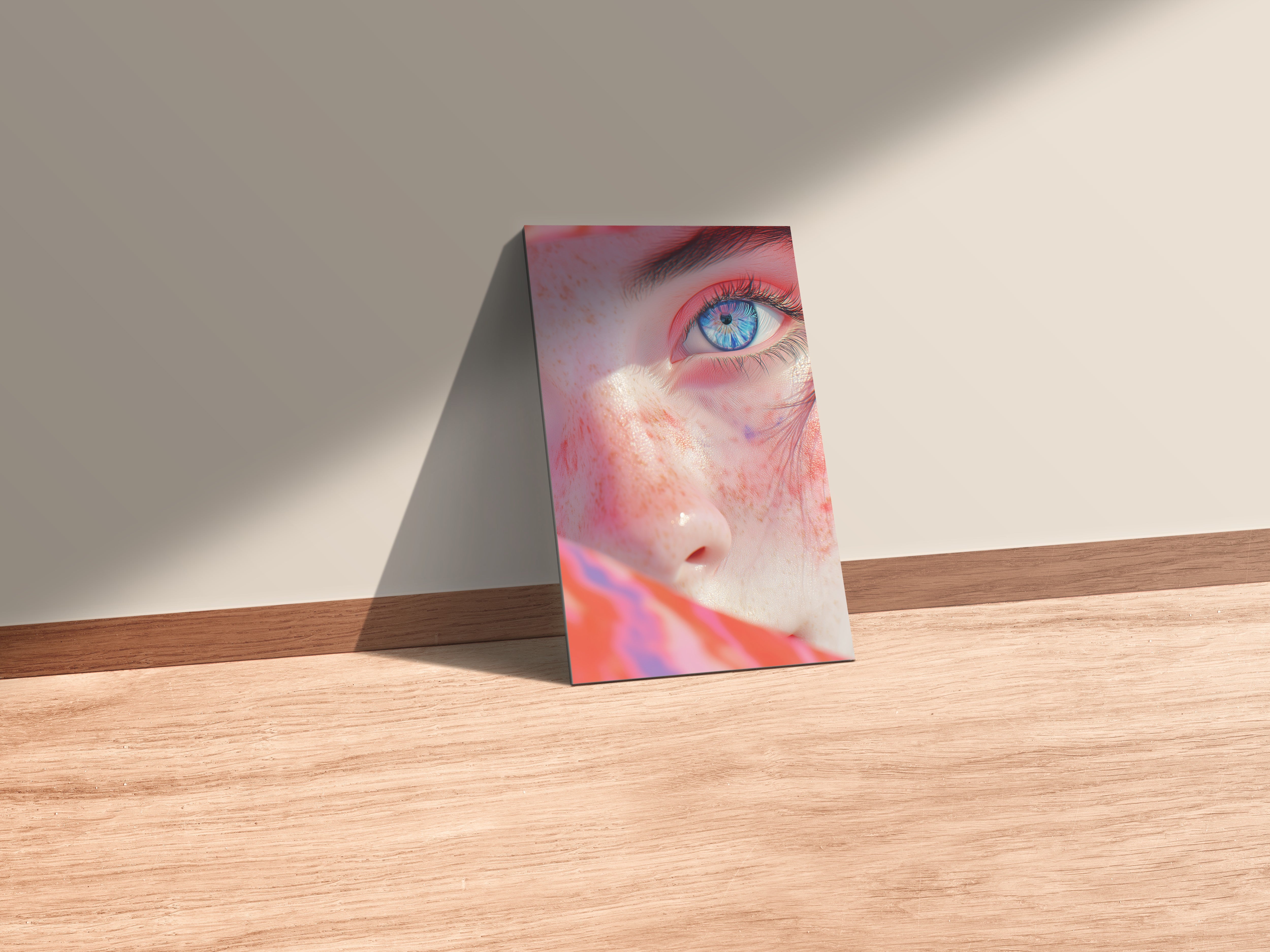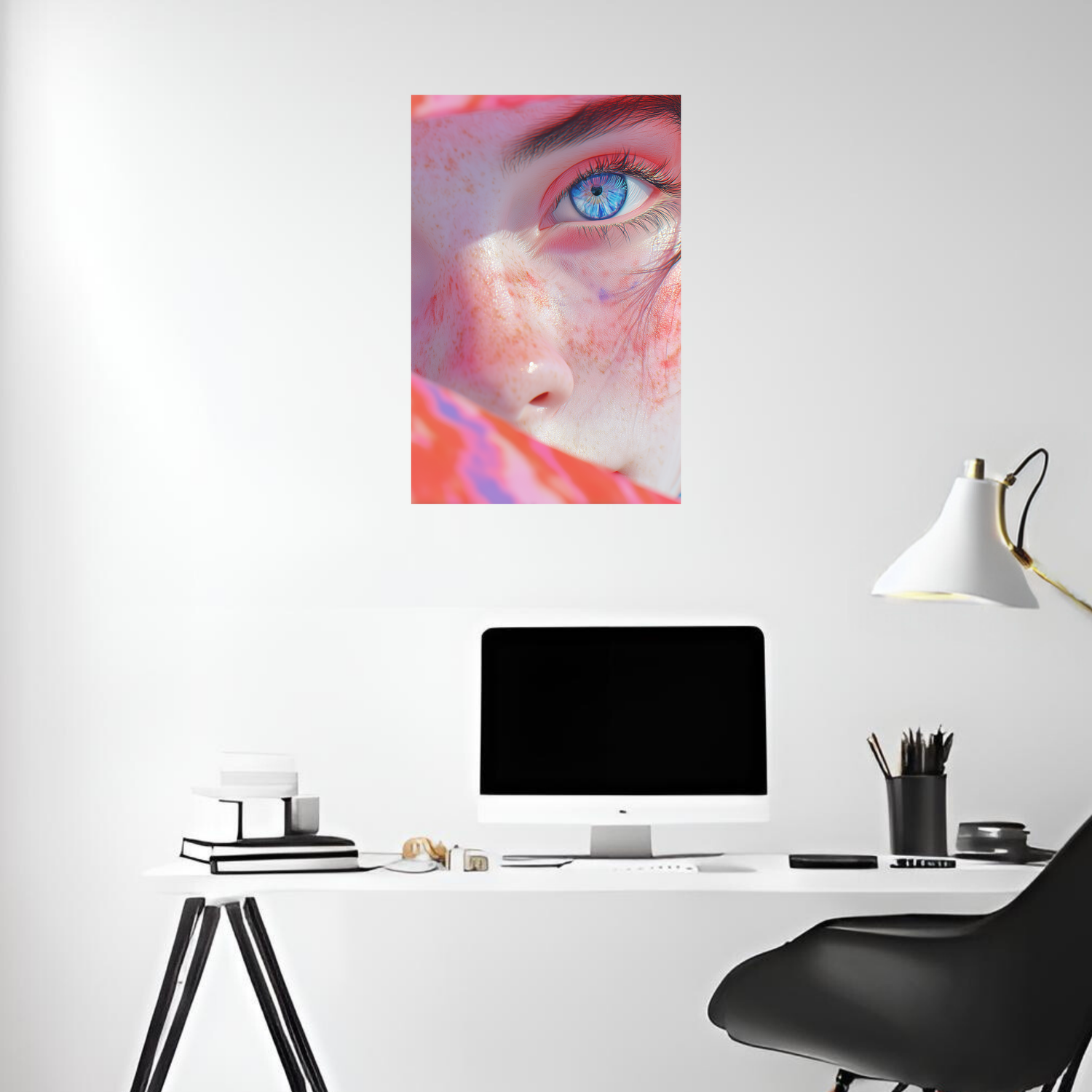 Closeup of Blue Eyed Redhead Girl Metal Posters | Premium, Waterproof & Magnet-Mounted Art