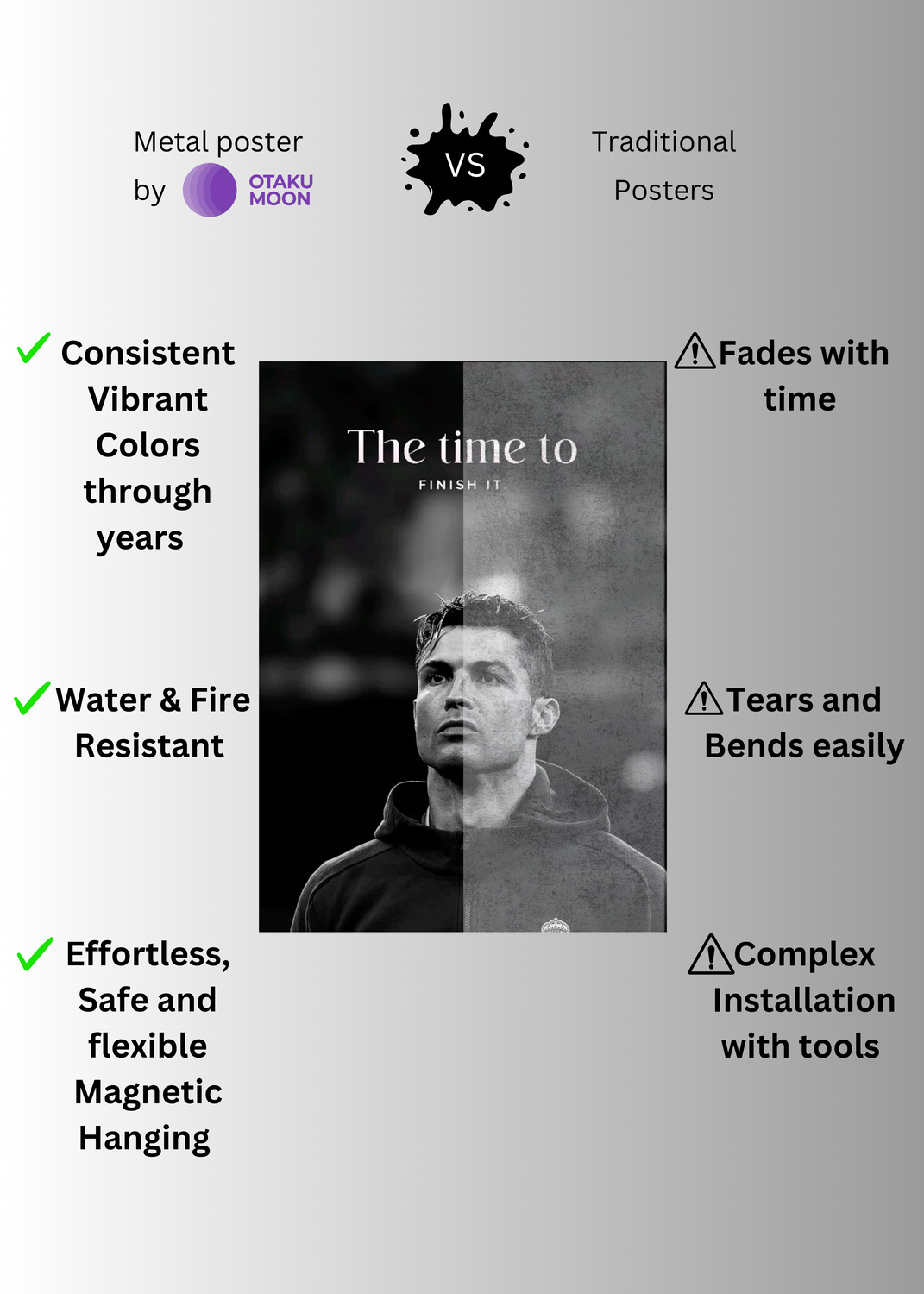 Cristiano Ronaldo Finisher Metal Wall Posters | Premium, Waterproof & Magnet-Mounted Art