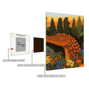 Crocodile Illustration Metal Wall Posters | Premium, Waterproof & Magnet-Mounted Art