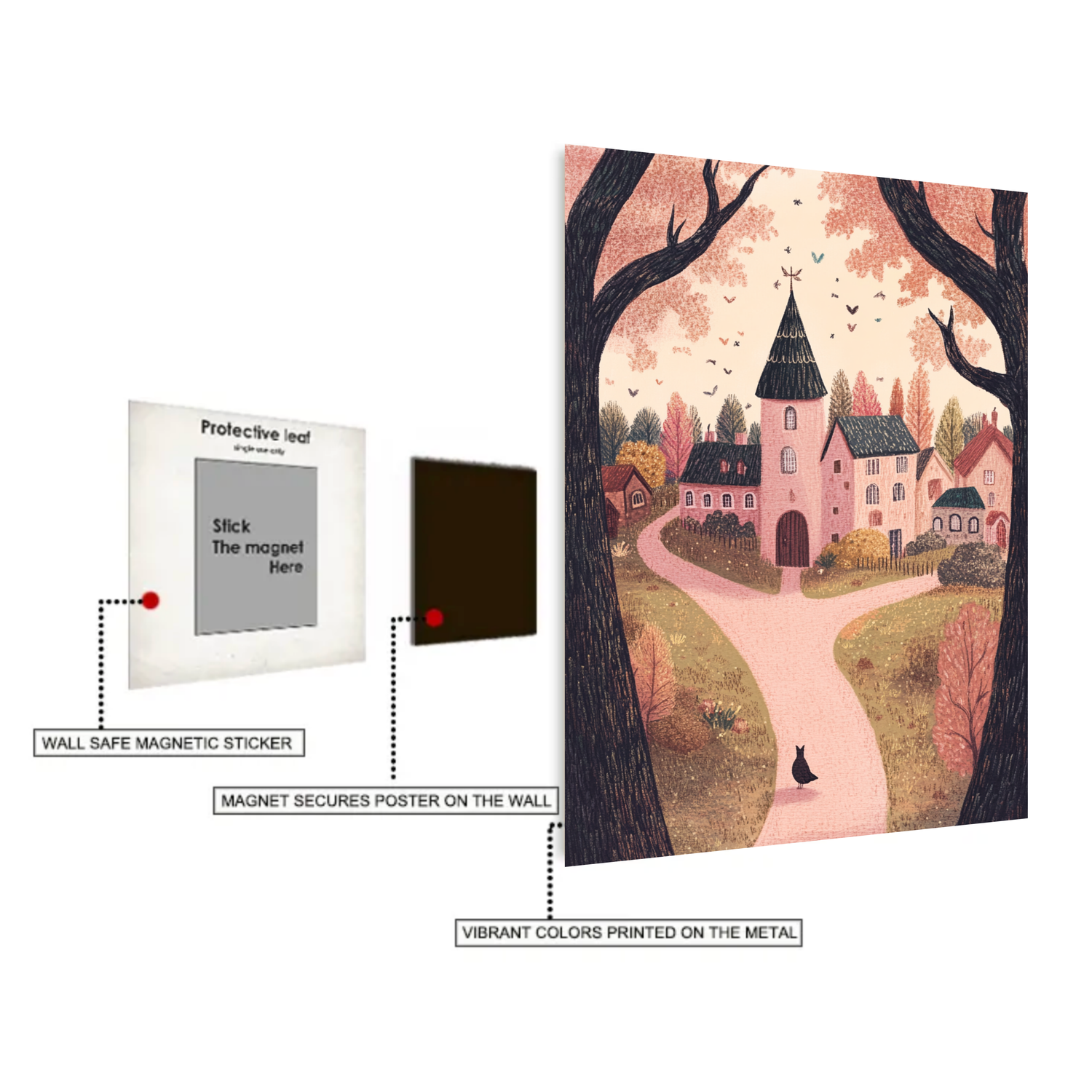 Cute Castle Metal Wall Posters | Premium, Waterproof & Magnet-Mounted Art