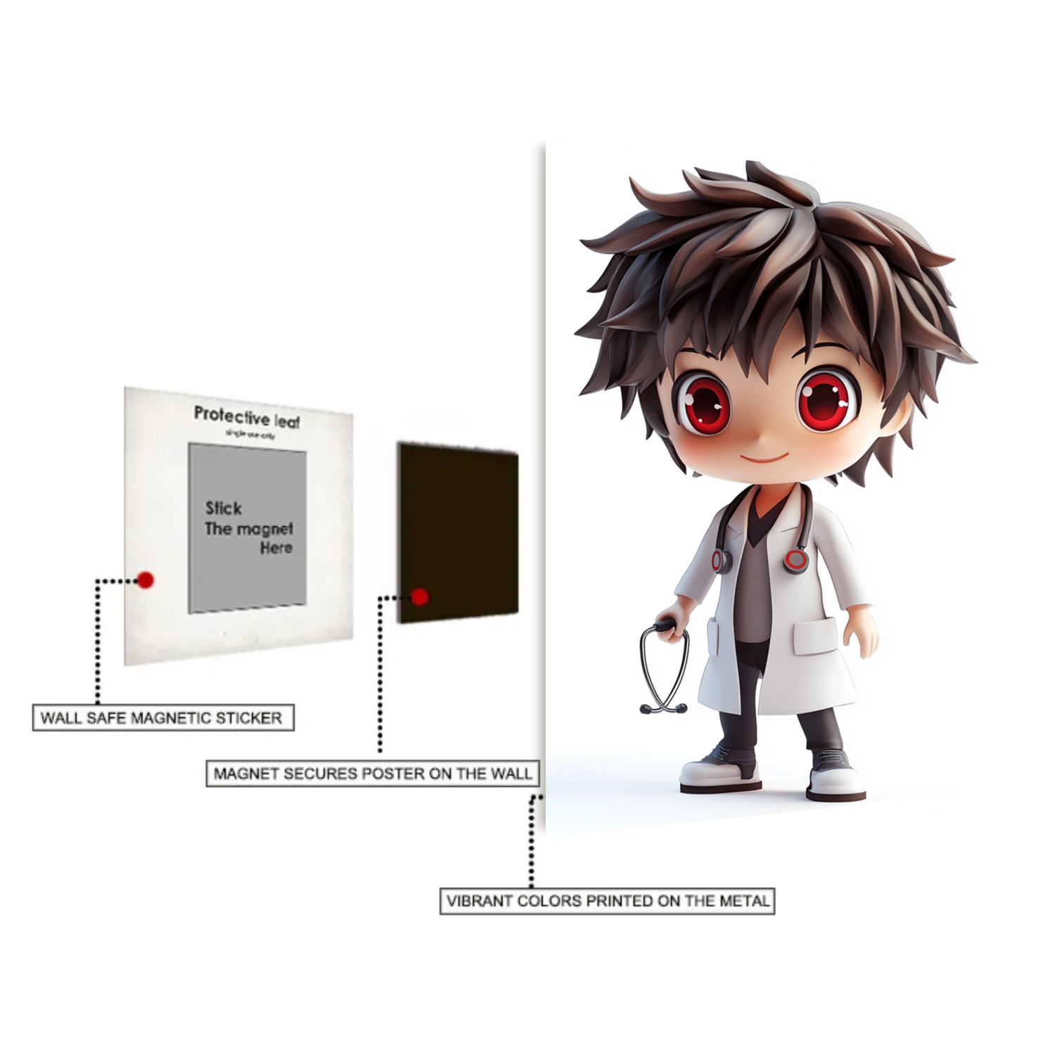 Cute Doctor Child Metal Posters | Premium, Waterproof & Magnet-Mounted Art