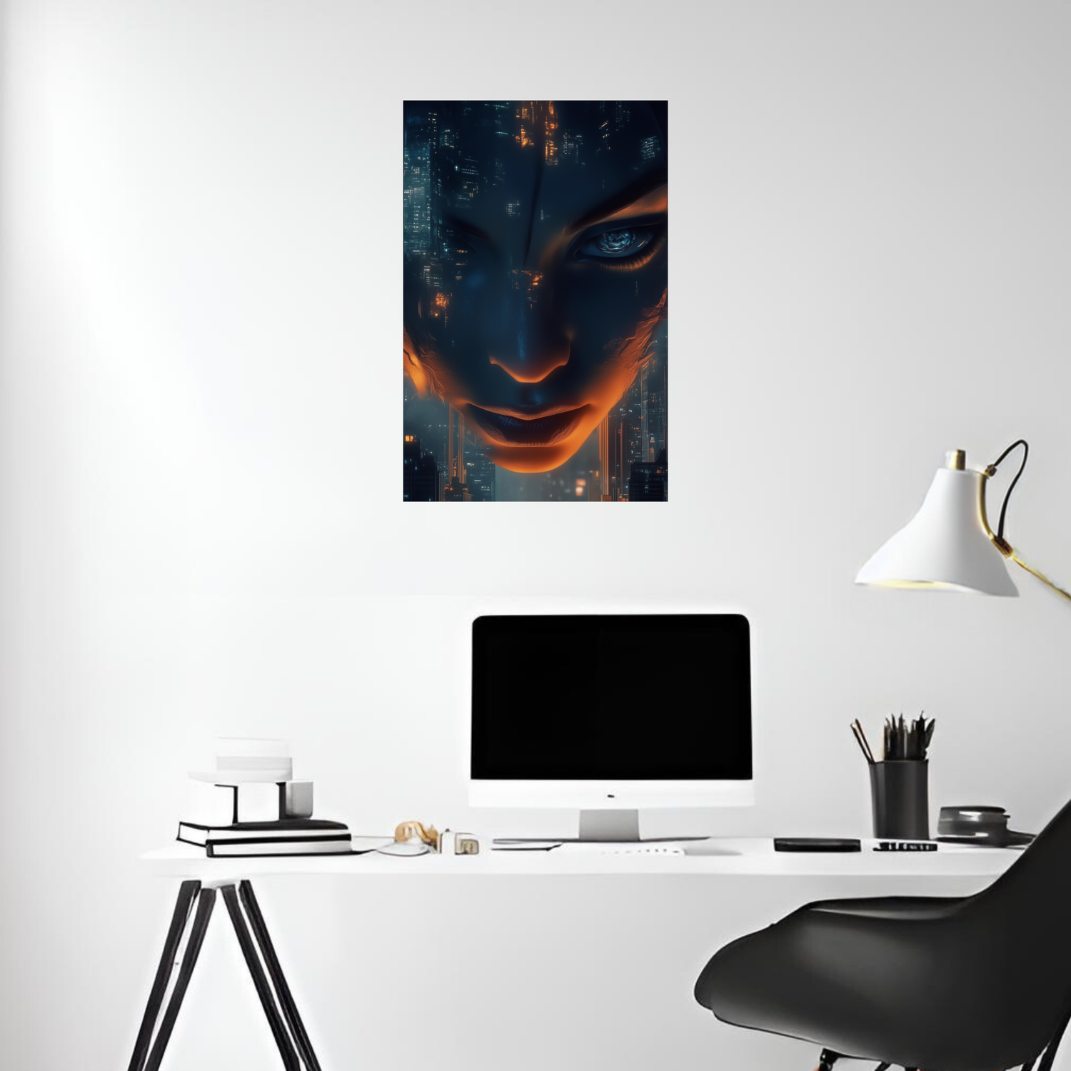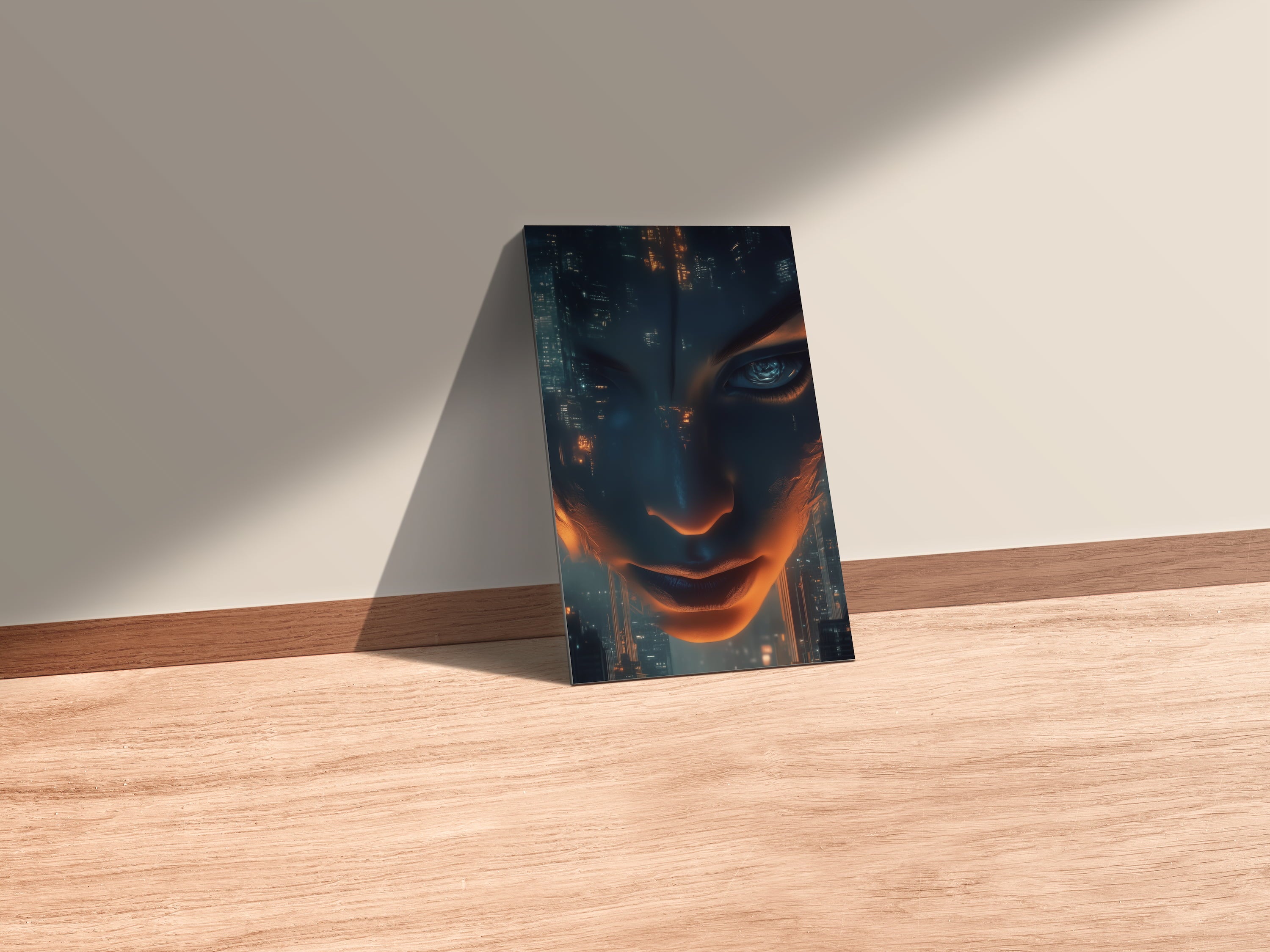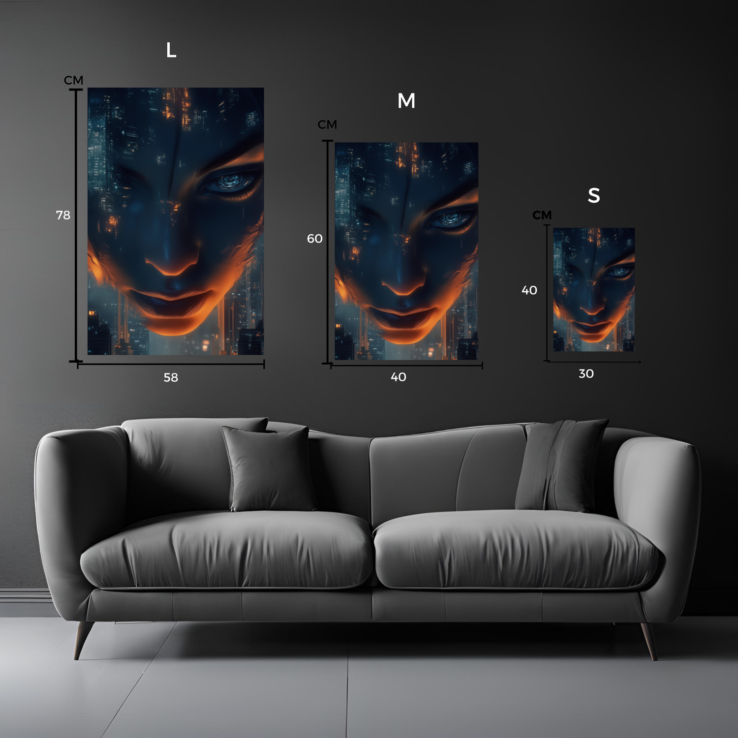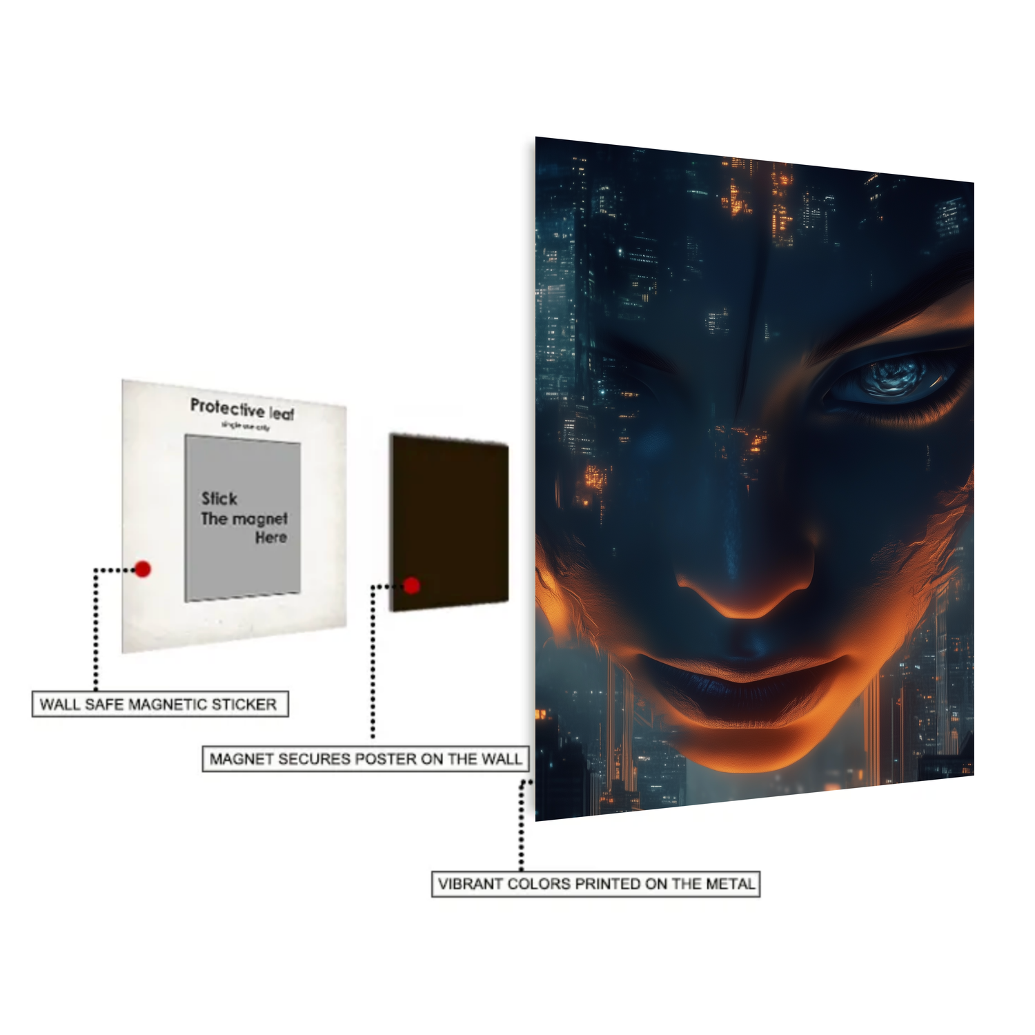 Cyborg Girl City Combination Metal Wall Posters | Premium, Waterproof & Magnet-Mounted Art