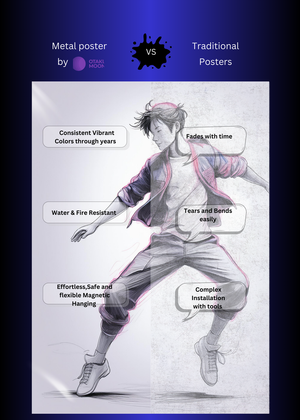 At Otaku Moon, we blend cutting-edge innovation with centuries-old Japanese craftsmanship to create metal wall posters that are as durable as they are breathtaking. Designed for art lovers who demand vibrancy, versatility, and longevity, our posters are handmade using futuristic techniques to deliver superior color contrast, remarkable detail, and a glossy finish that brings every artwork to life.