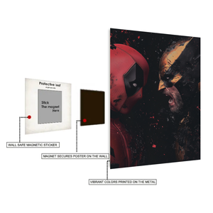 Deadpool vs Wolverine Metal Wall Posters | Premium, Waterproof & Magnet-Mounted Art