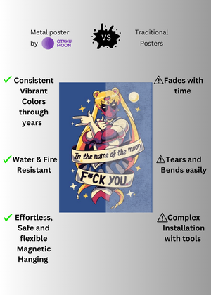 At Otaku Moon, we blend cutting-edge innovation with centuries-old Japanese craftsmanship to create metal wall posters that are as durable as they are breathtaking. Designed for art lovers who demand vibrancy, versatility, and longevity, our posters are handmade using futuristic techniques to deliver superior color contrast, remarkable detail, and a glossy finish that brings every artwork to life.