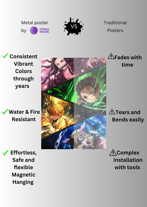 At Otaku Moon, we blend cutting-edge innovation with centuries-old Japanese craftsmanship to create metal wall posters that are as durable as they are breathtaking. Designed for art lovers who demand vibrancy, versatility, and longevity, our posters are handmade using futuristic techniques to deliver superior color contrast, remarkable detail, and a glossy finish that brings every artwork to life.