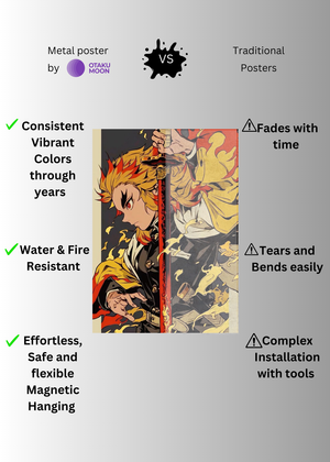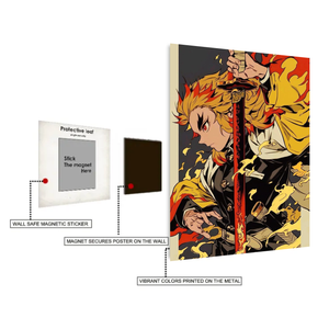 Demon Slayer Kyōjurō Rengoku Ilustration Metal Posters | Premium, Waterproof & Magnet-Mounted Art
