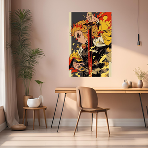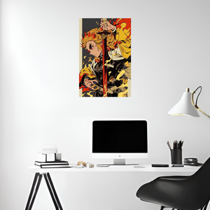Demon Slayer Kyōjurō Rengoku Ilustration Metal Wall Poster