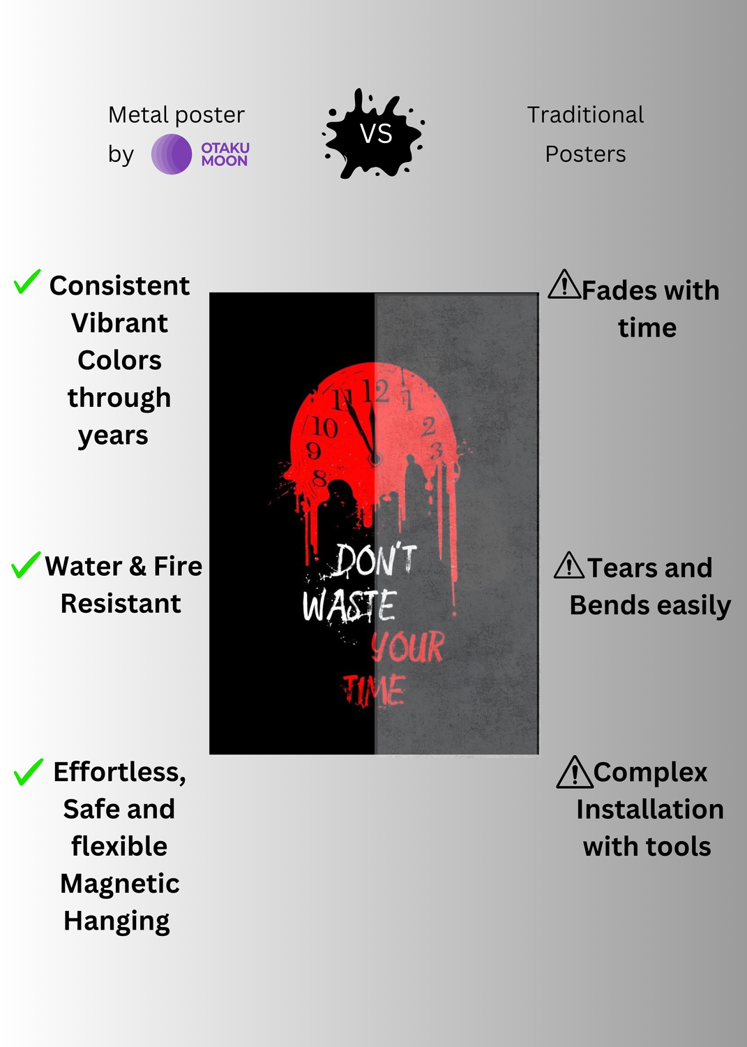 Don_t Waste Your Time Motivational Metal Posters | Premium, Waterproof & Magnet-Mounted Art