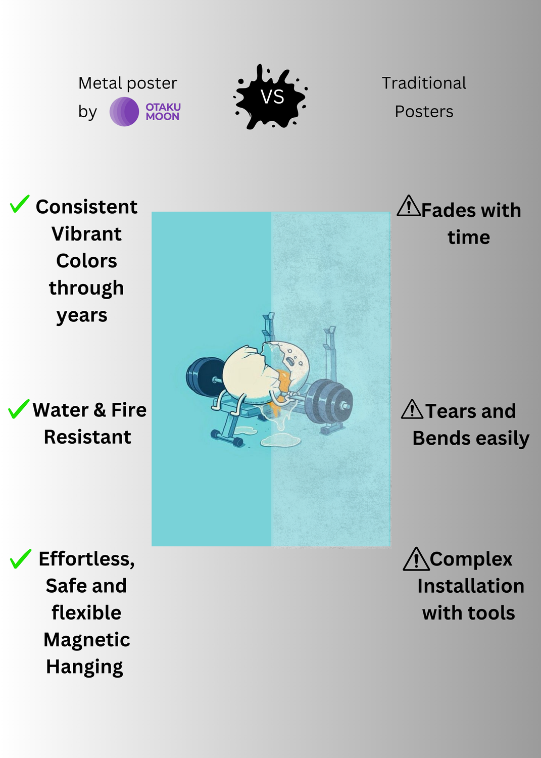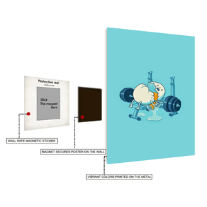 Egg in Gym Funny Metal Posters | Premium, Waterproof & Magnet-Mounted Art