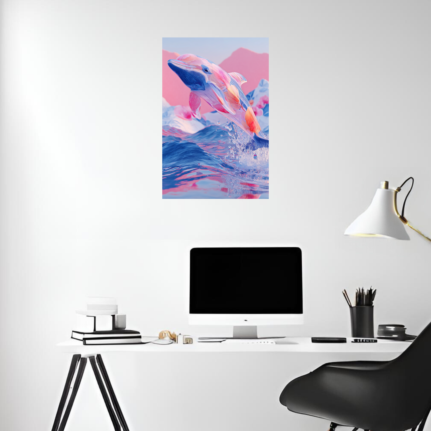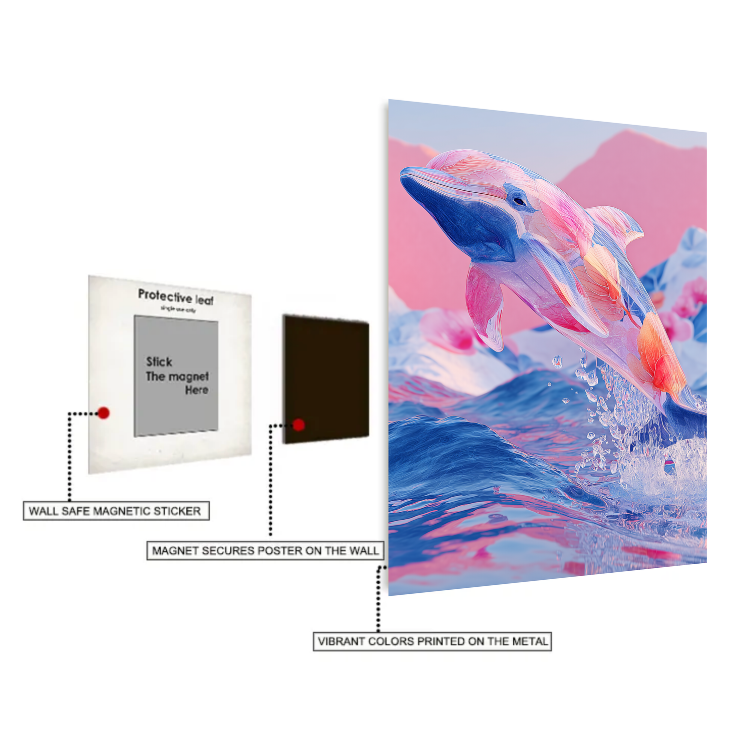 Elegant Colourful Dolphin Artwork Metal Posters | Premium, Waterproof & Magnet-Mounted Art