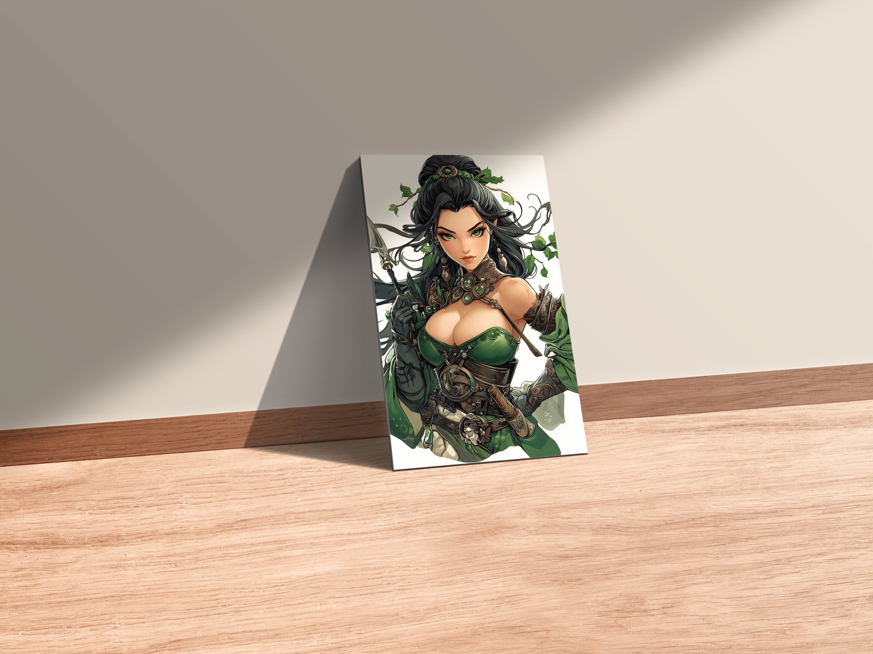 Female Warrior of Green Nature Metal Wall Posters | Premium, Waterproof & Magnet-Mounted Art