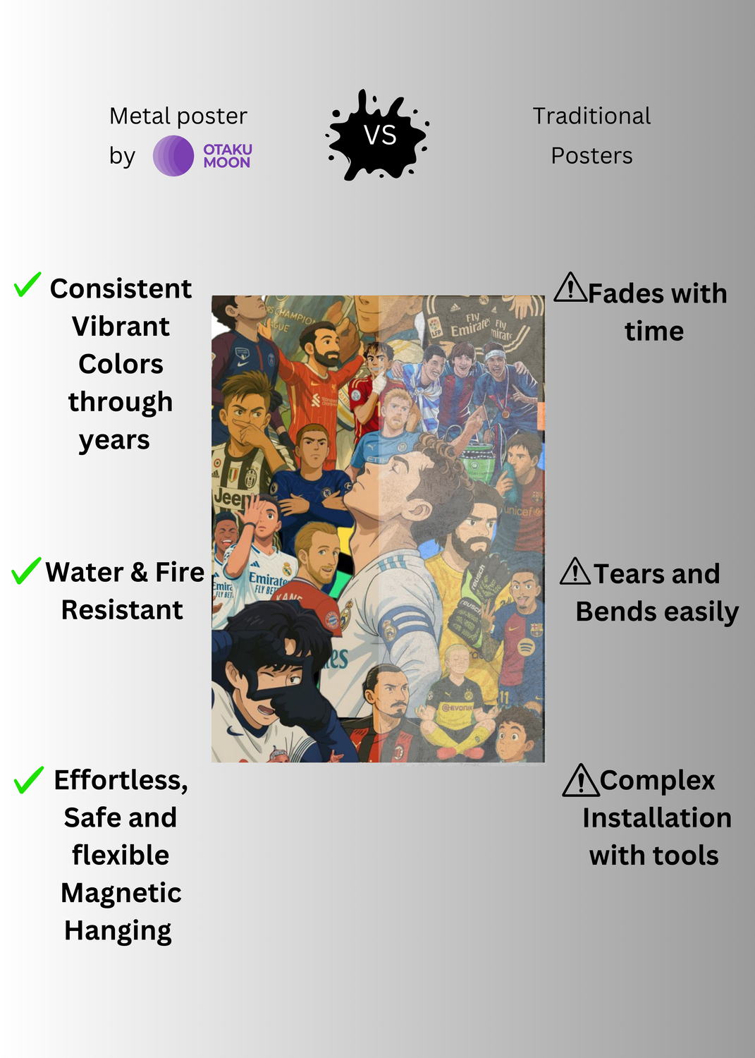 Football Heroes Anime style Metal Posters | Premium, Waterproof & Magnet-Mounted Art