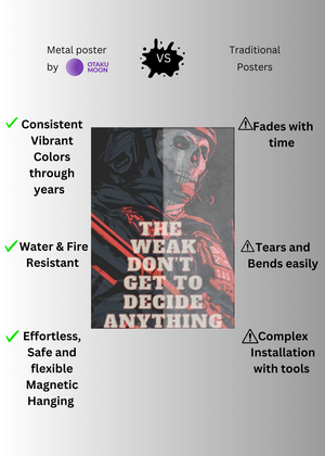 At Otaku Moon, we blend cutting-edge innovation with centuries-old Japanese craftsmanship to create metal wall posters that are as durable as they are breathtaking. Designed for art lovers who demand vibrancy, versatility, and longevity, our posters are handmade using futuristic techniques to deliver superior color contrast, remarkable detail, and a glossy finish that brings every artwork to life.