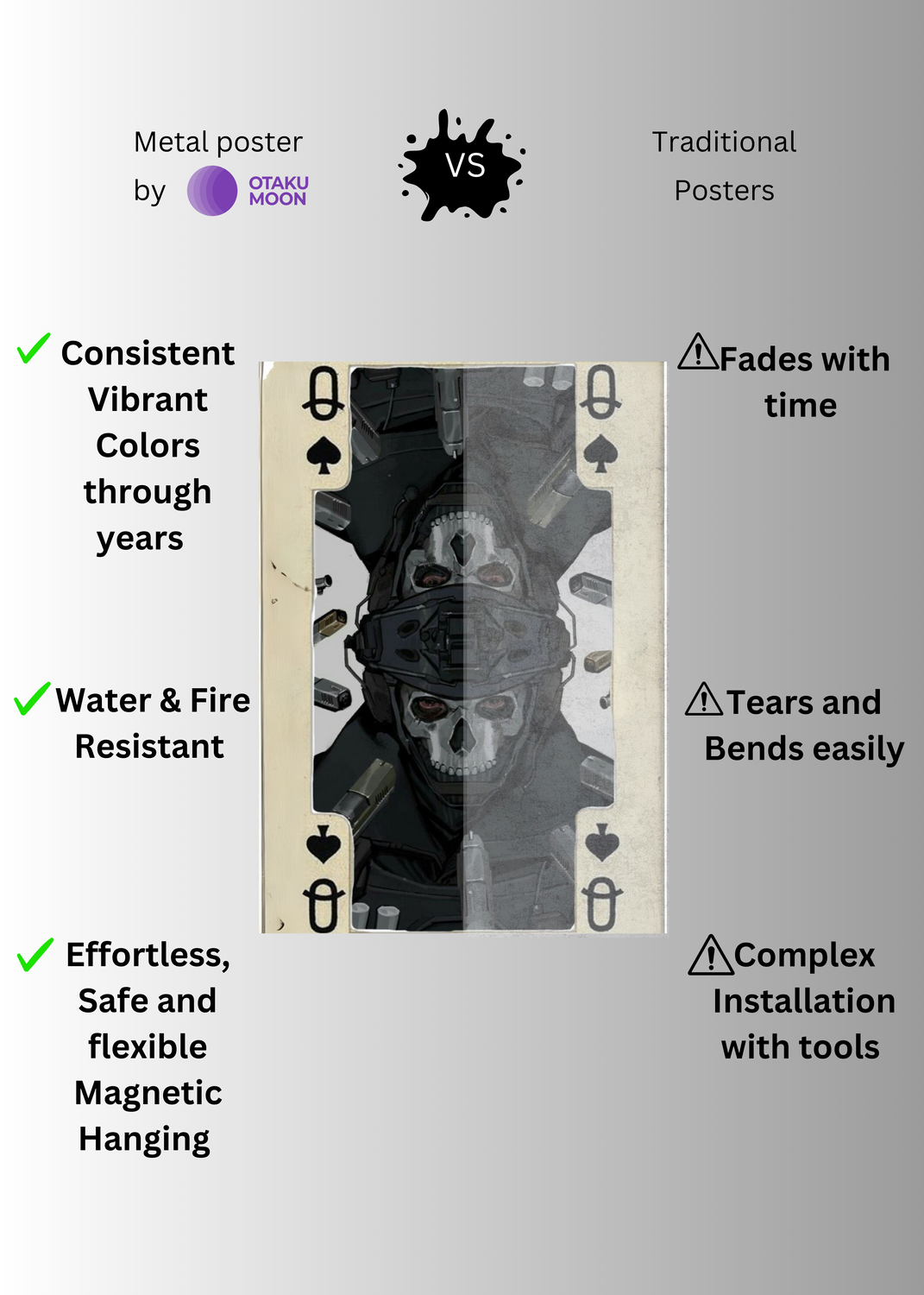 Ghost Q Card Metal Posters | Premium, Waterproof & Magnet-Mounted Art