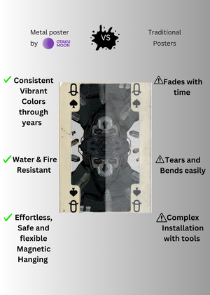 At Otaku Moon, we blend cutting-edge innovation with centuries-old Japanese craftsmanship to create metal wall posters that are as durable as they are breathtaking. Designed for art lovers who demand vibrancy, versatility, and longevity, our posters are handmade using futuristic techniques to deliver superior color contrast, remarkable detail, and a glossy finish that brings every artwork to life.