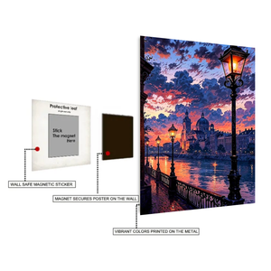 High Quality City in the Sunset Metal Posters | Premium, Waterproof & Magnet-Mounted Art