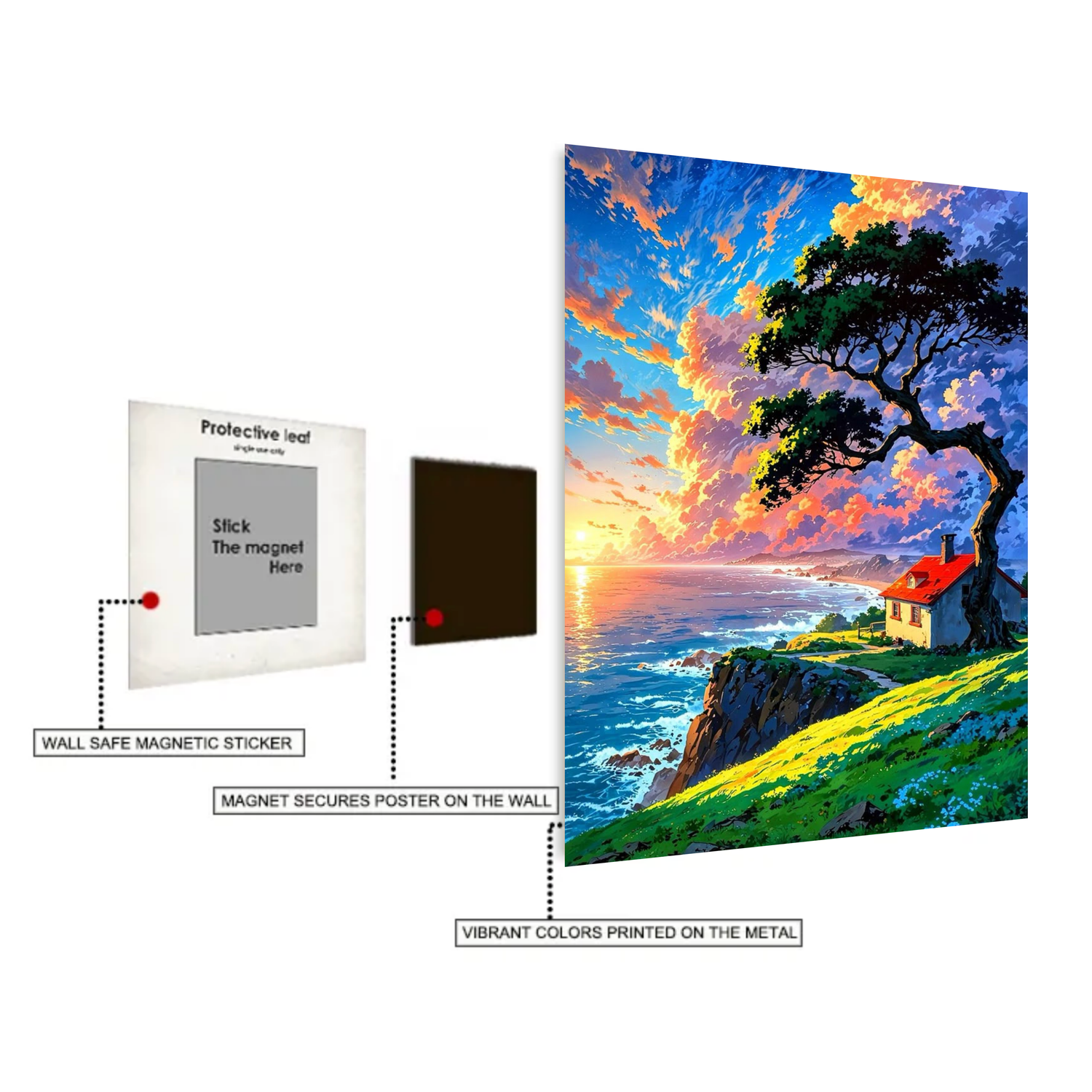 High Quality House by the Sea artwork Metal Posters | Premium, Waterproof & Magnet-Mounted Art