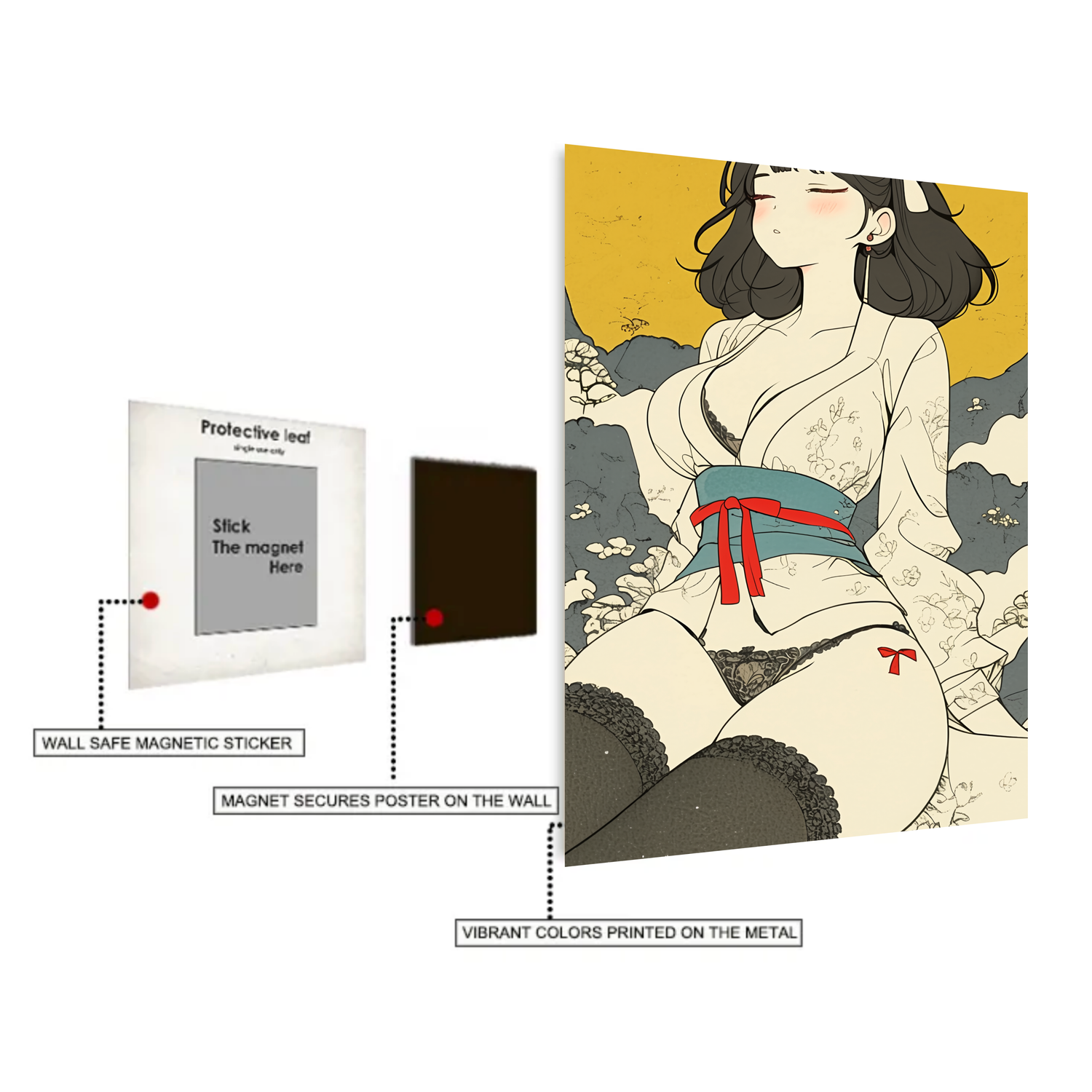 Hot Japanese Girl Artwork Metal Wall Posters | Premium, Waterproof & Magnet-Mounted Art