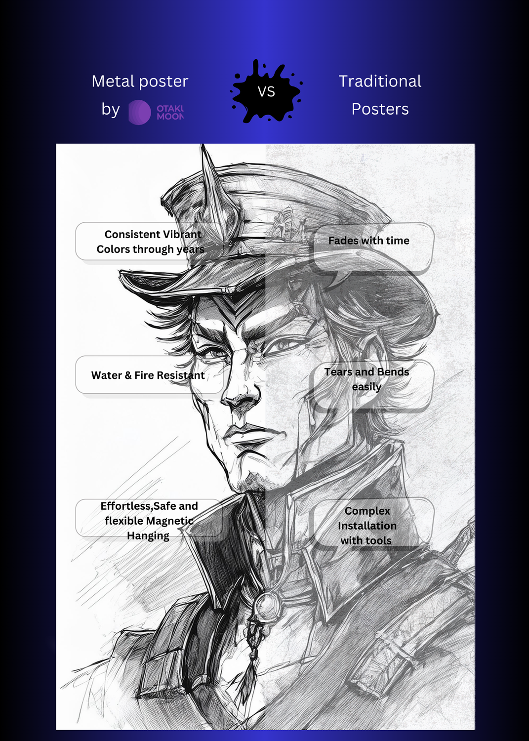 At Otaku Moon, we blend cutting-edge innovation with centuries-old Japanese craftsmanship to create metal wall posters that are as durable as they are breathtaking. Designed for art lovers who demand vibrancy, versatility, and longevity, our posters are handmade using futuristic techniques to deliver superior color contrast, remarkable detail, and a glossy finish that brings every artwork to life.