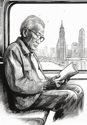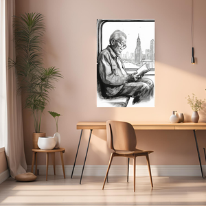 Japanese man reading Ilustration Metal Wall Posters | Premium, Waterproof & Magnet-Mounted Art