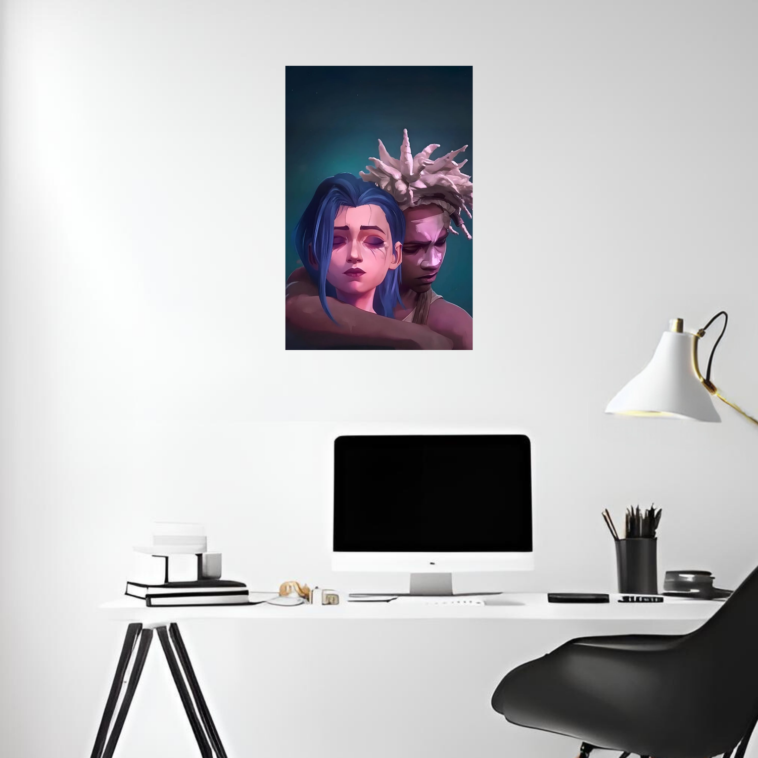 Jinx & Ekko hug Metal Posters | Premium, Waterproof & Magnet-Mounted Art