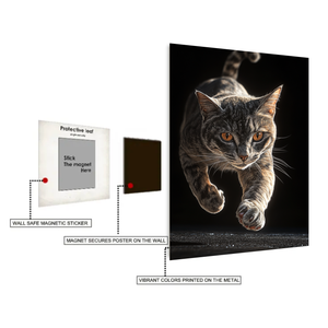 Jumping Cat Metal Wall Posters | Premium, Waterproof & Magnet-Mounted Art