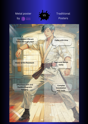 At Otaku Moon, we blend cutting-edge innovation with centuries-old Japanese craftsmanship to create metal wall posters that are as durable as they are breathtaking. Designed for art lovers who demand vibrancy, versatility, and longevity, our posters are handmade using futuristic techniques to deliver superior color contrast, remarkable detail, and a glossy finish that brings every artwork to life.