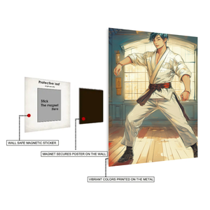 Karate Student Illustration Metal Wall Posters | Premium, Waterproof & Magnet-Mounted Art