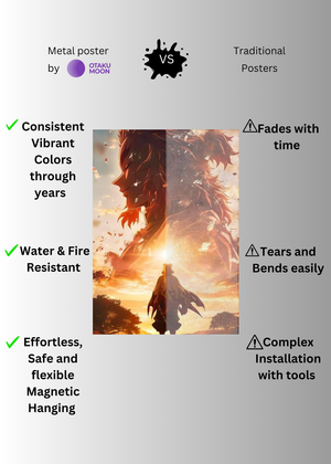 At Otaku Moon, we blend cutting-edge innovation with centuries-old Japanese craftsmanship to create metal wall posters that are as durable as they are breathtaking. Designed for art lovers who demand vibrancy, versatility, and longevity, our posters are handmade using futuristic techniques to deliver superior color contrast, remarkable detail, and a glossy finish that brings every artwork to life.