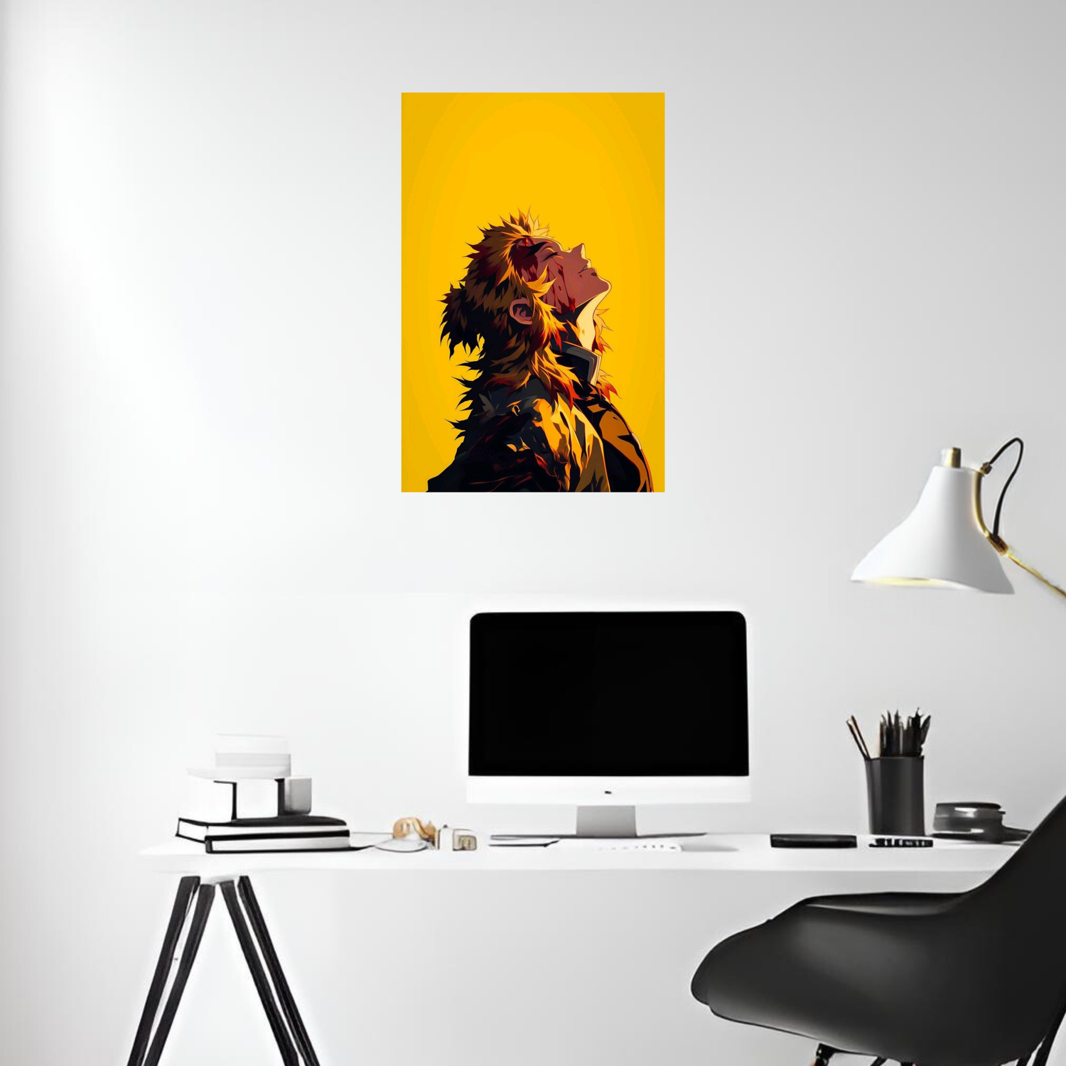 Kyōjurō Rengoku in Yellow Digital Metal Wall Poster