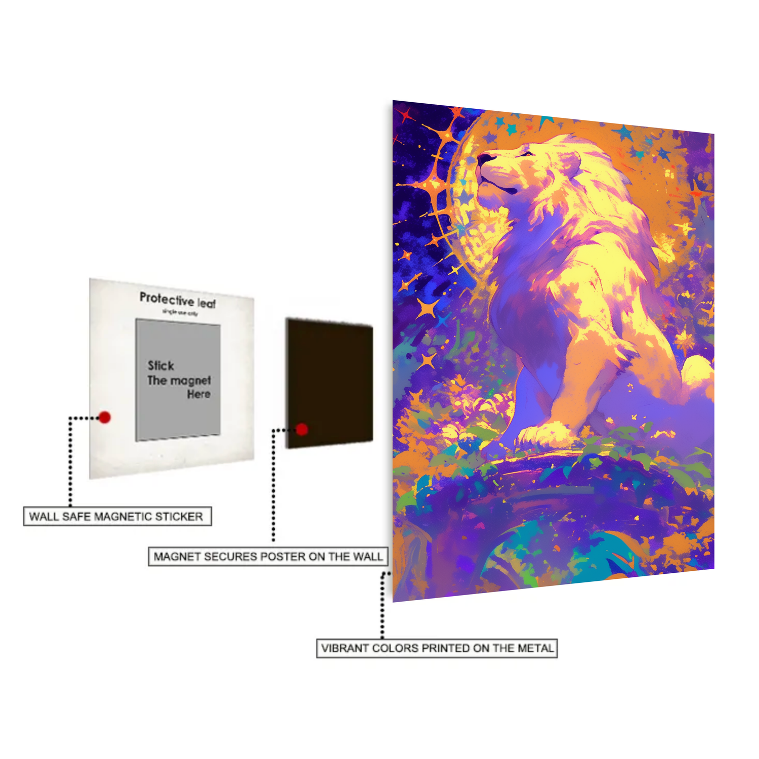 Lion Illustration Metal Wall Posters | Premium, Waterproof & Magnet-Mounted Art