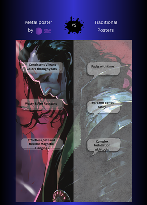 At Otaku Moon, we blend cutting-edge innovation with centuries-old Japanese craftsmanship to create metal wall posters that are as durable as they are breathtaking. Designed for art lovers who demand vibrancy, versatility, and longevity, our posters are handmade using futuristic techniques to deliver superior color contrast, remarkable detail, and a glossy finish that brings every artwork to life.