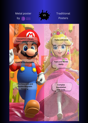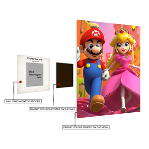 Mario and Princess Peach Metal Wall Posters | Premium, Waterproof & Magnet-Mounted Art