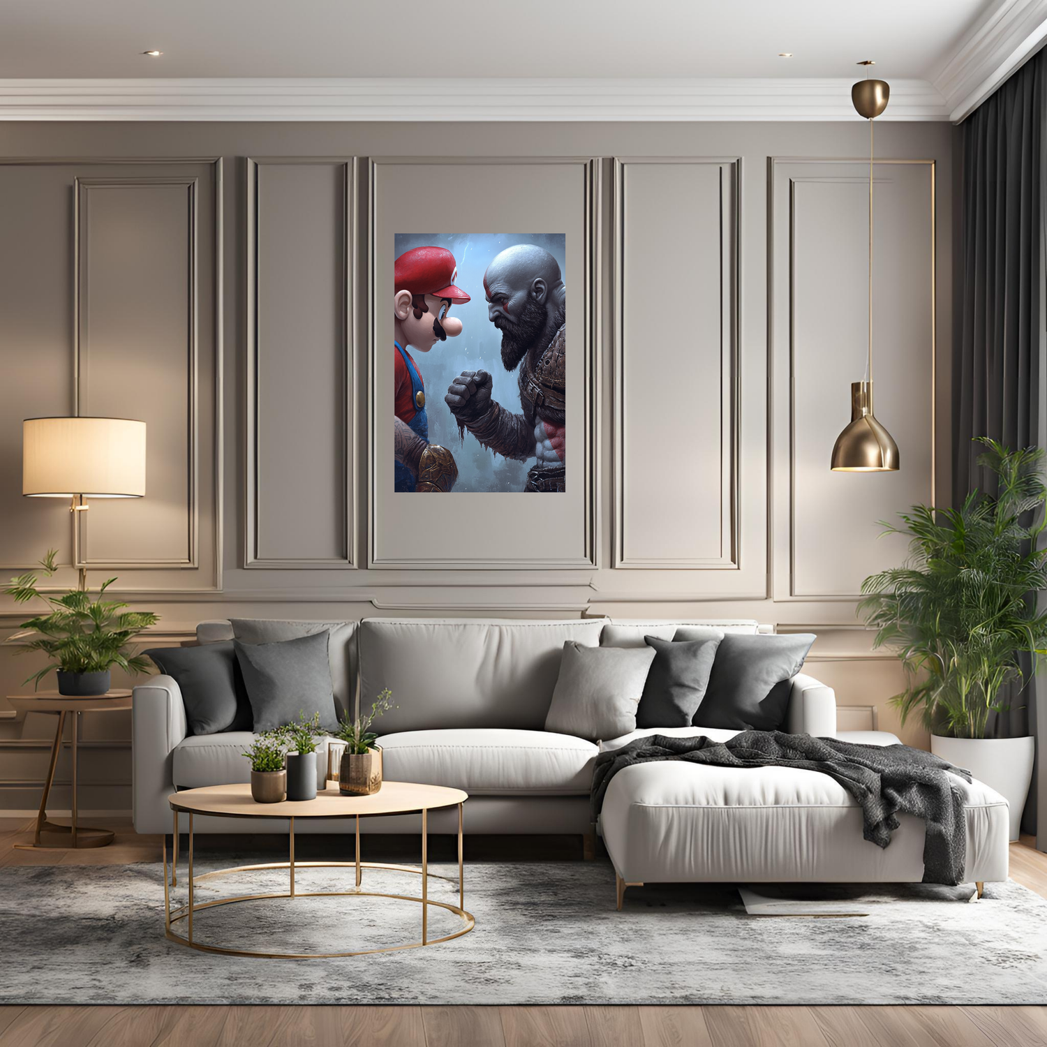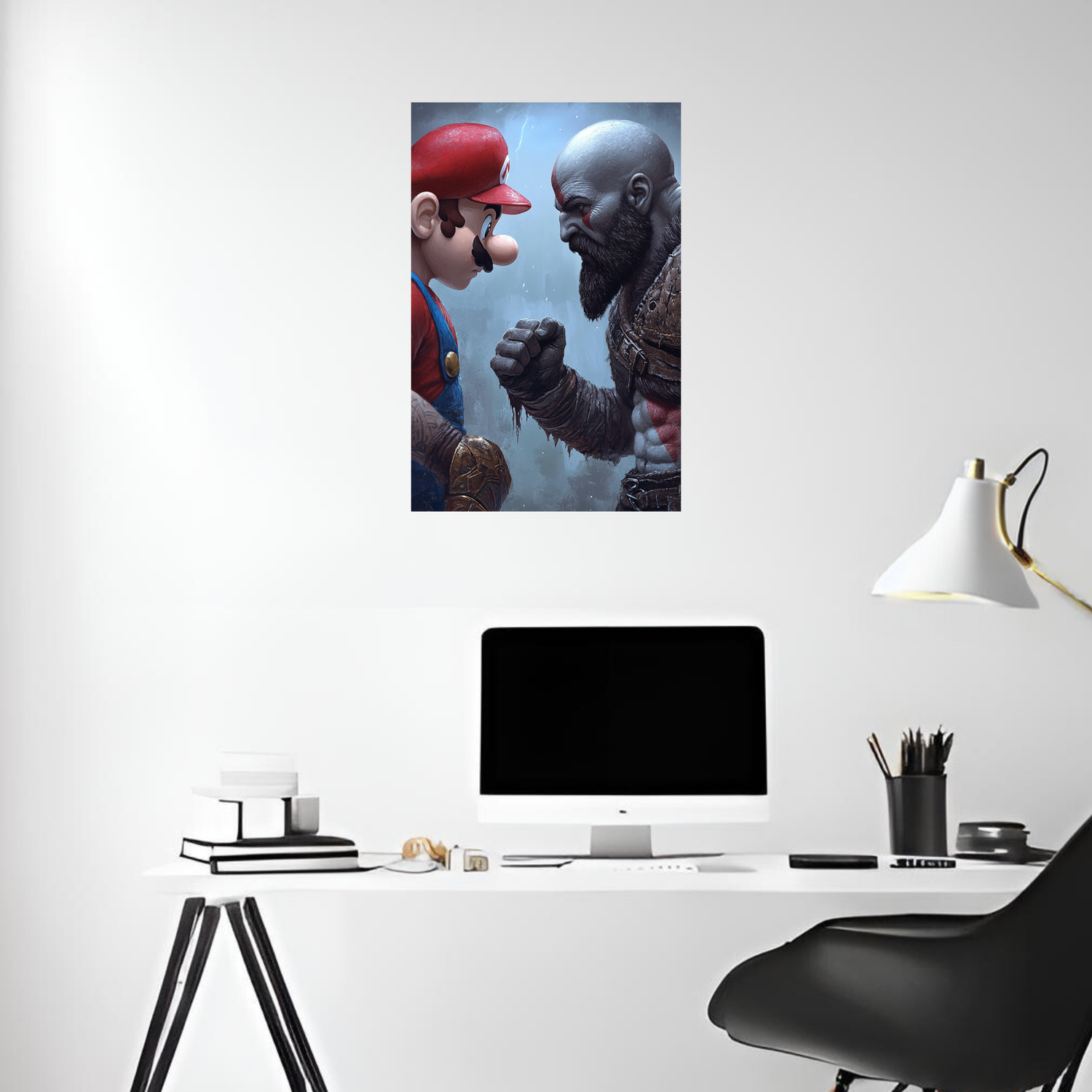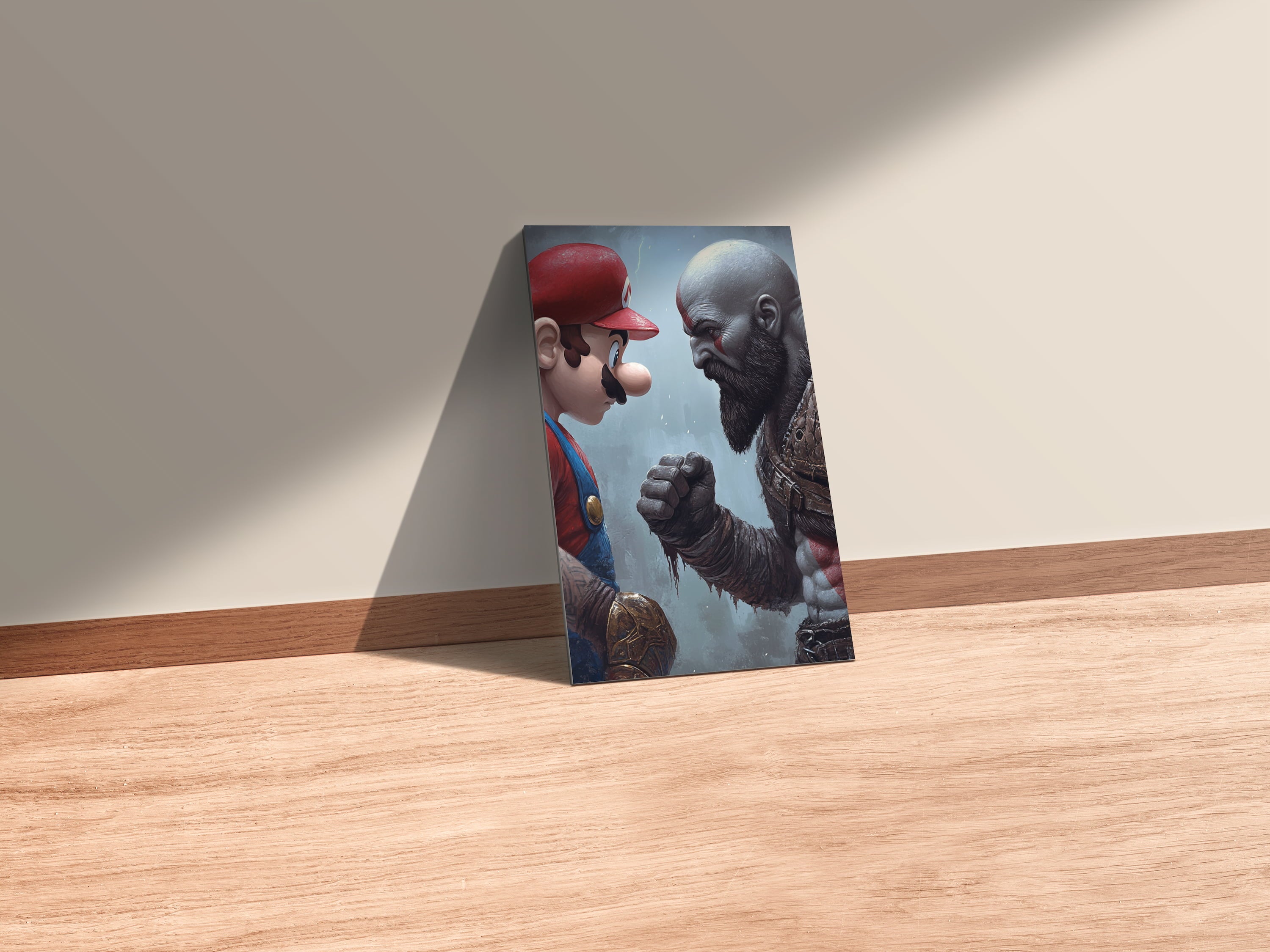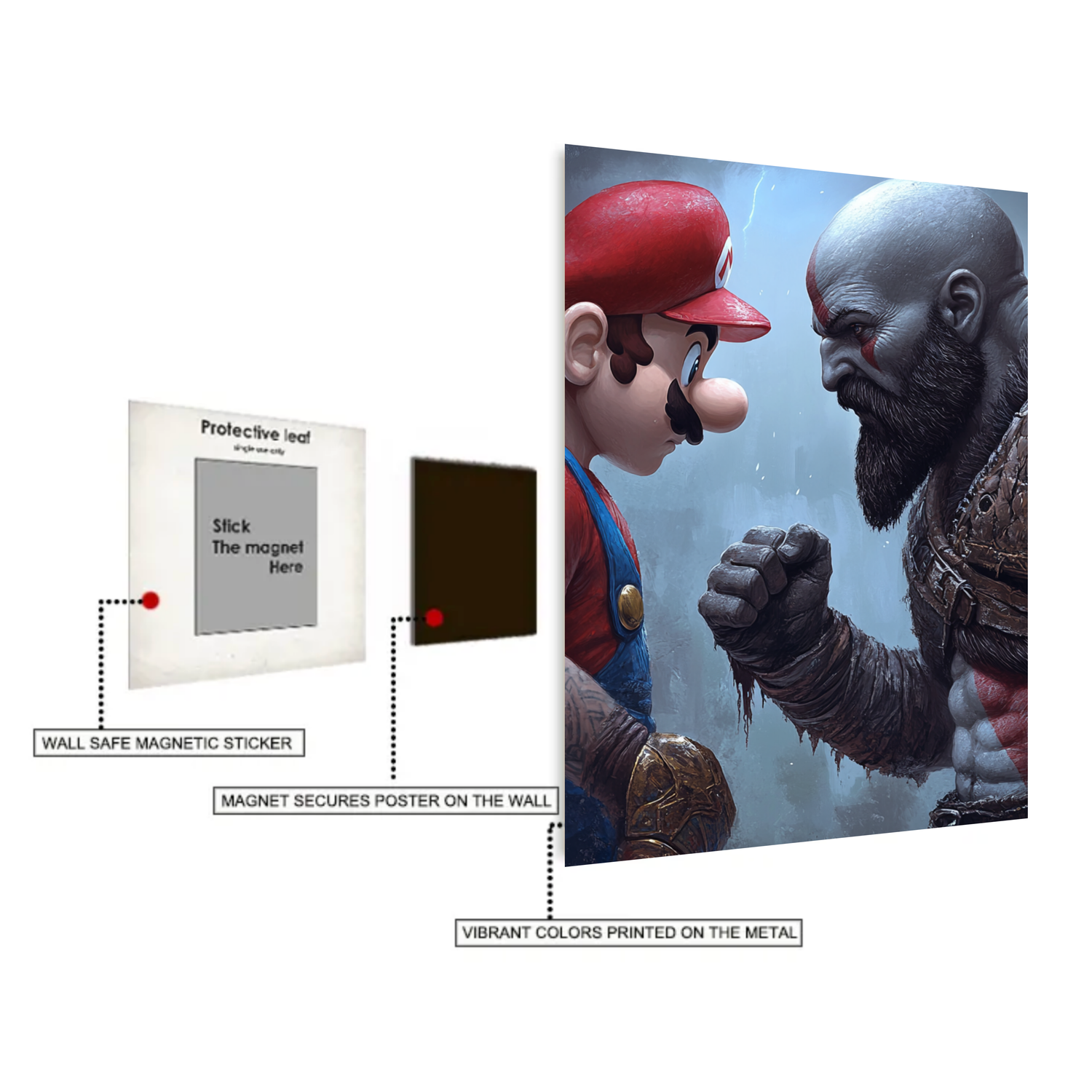 Mario vs Kratos Metal Wall Posters | Premium, Waterproof & Magnet-Mounted Art
