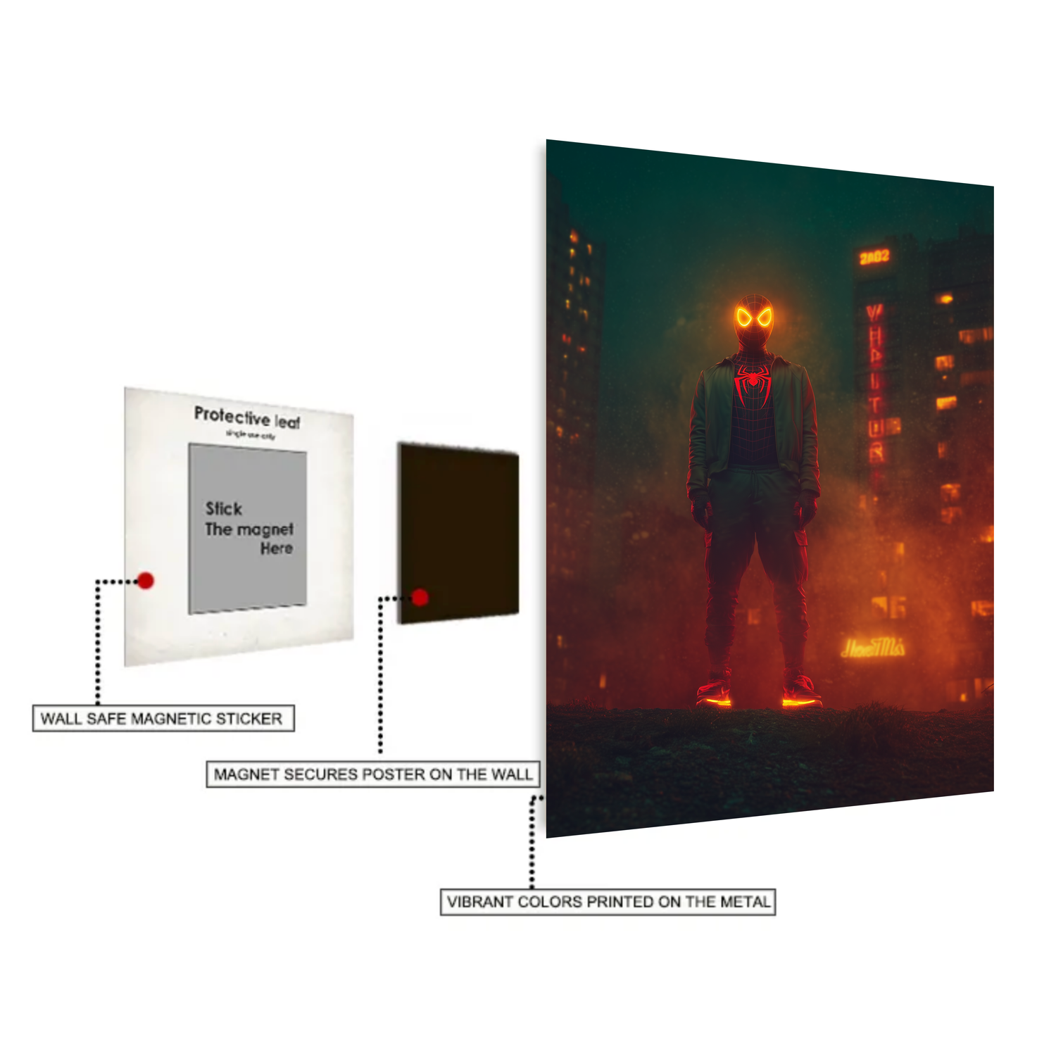 Miles Morales Spiderman Metal Posters | Premium, Waterproof & Magnet-Mounted Art
