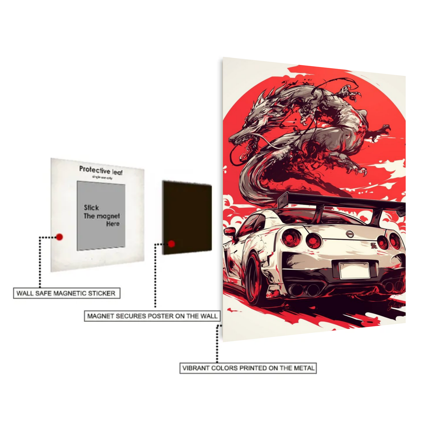 Nissan GTR Beast Metal Wall Posters | Premium, Waterproof & Magnet-Mounted Art