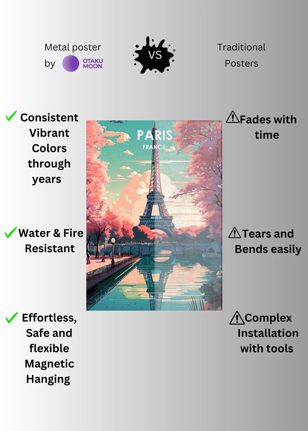 Paris France Art Metal Posters | Premium, Waterproof & Magnet-Mounted Art