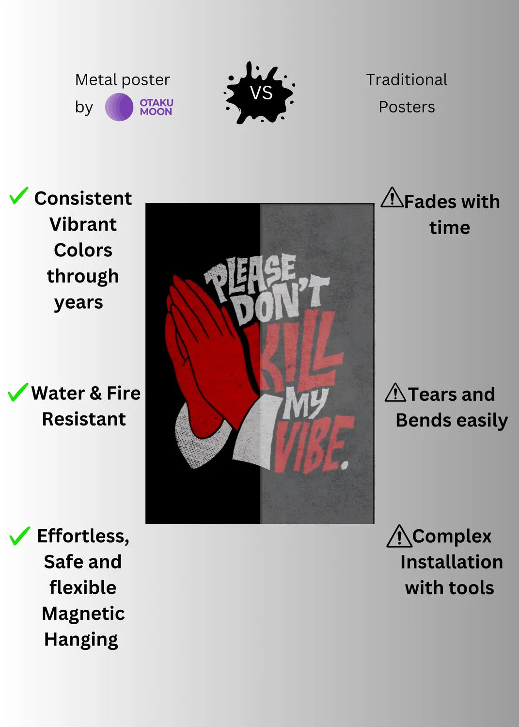 Please Don_t Kill My Vibe Metal Posters | Premium, Waterproof & Magnet-Mounted Art