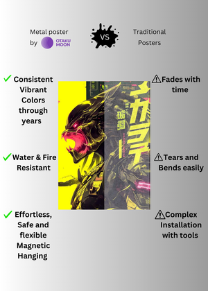 At Otaku Moon, we blend cutting-edge innovation with centuries-old Japanese craftsmanship to create metal wall posters that are as durable as they are breathtaking. Designed for art lovers who demand vibrancy, versatility, and longevity, our posters are handmade using futuristic techniques to deliver superior color contrast, remarkable detail, and a glossy finish that brings every artwork to life.