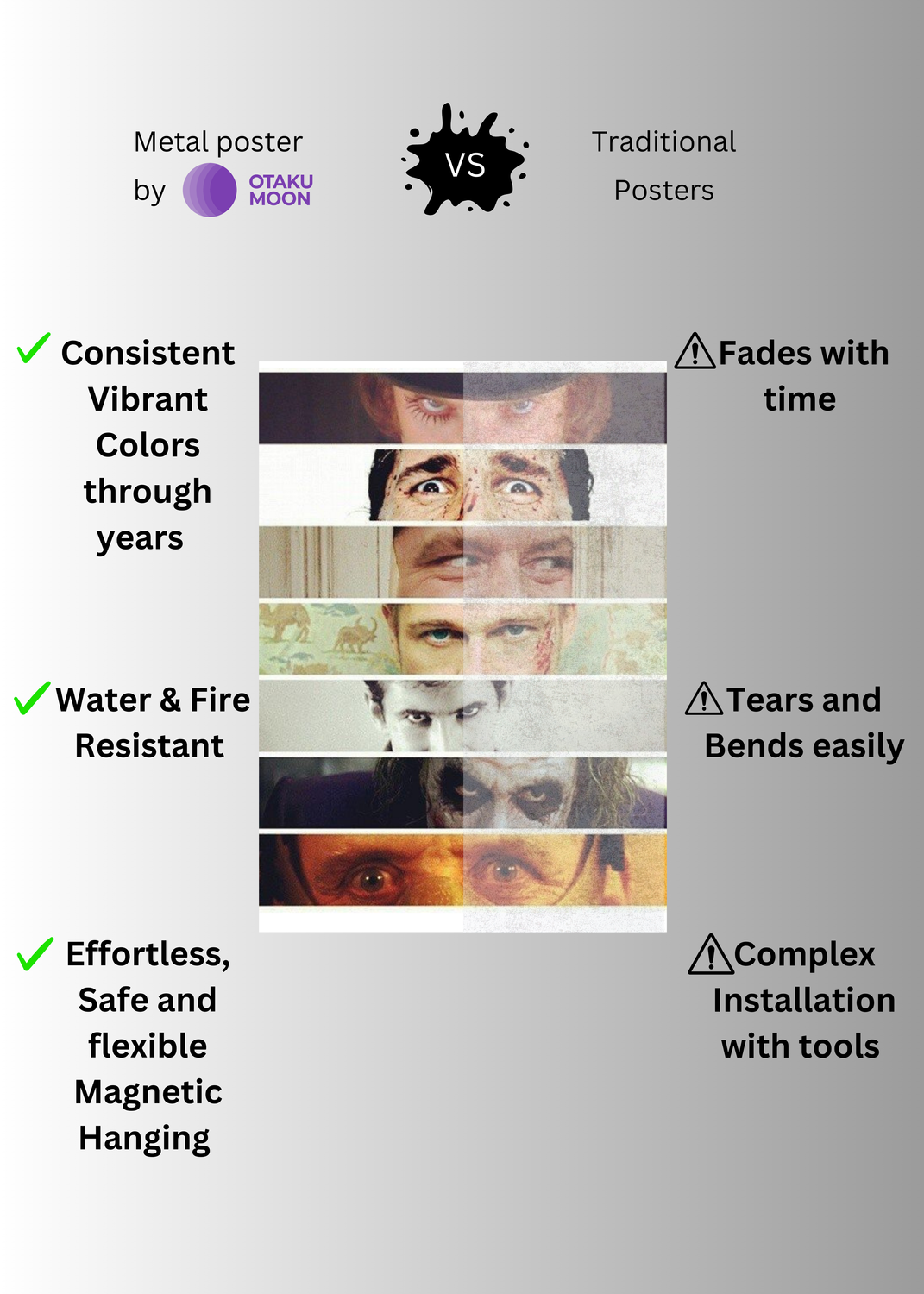 At Otaku Moon, we blend cutting-edge innovation with centuries-old Japanese craftsmanship to create metal wall posters that are as durable as they are breathtaking. Designed for art lovers who demand vibrancy, versatility, and longevity, our posters are handmade using futuristic techniques to deliver superior color contrast, remarkable detail, and a glossy finish that brings every artwork to life.