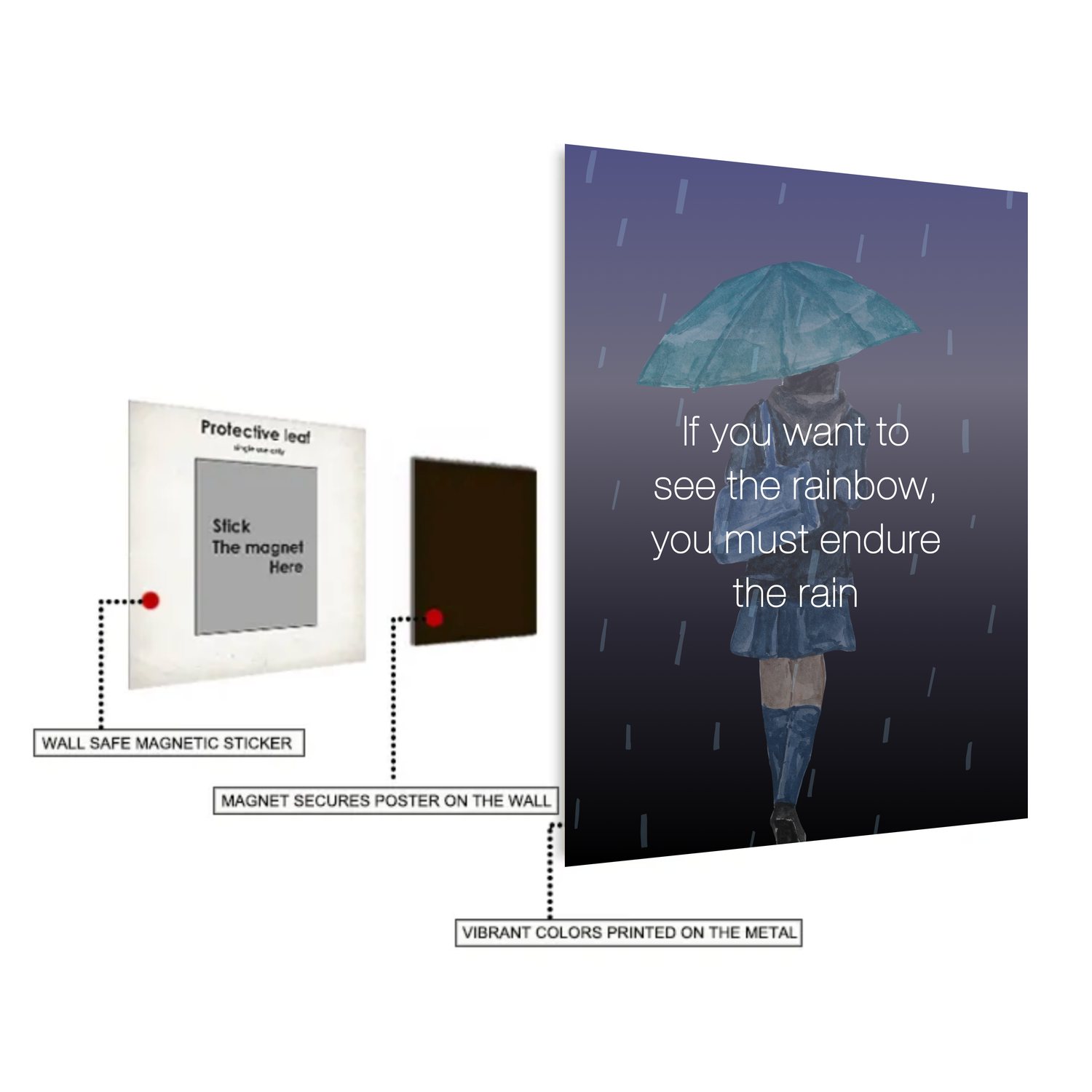 Rain and Rainbow Motivational Metal Posters | Premium, Waterproof & Magnet-Mounted Art