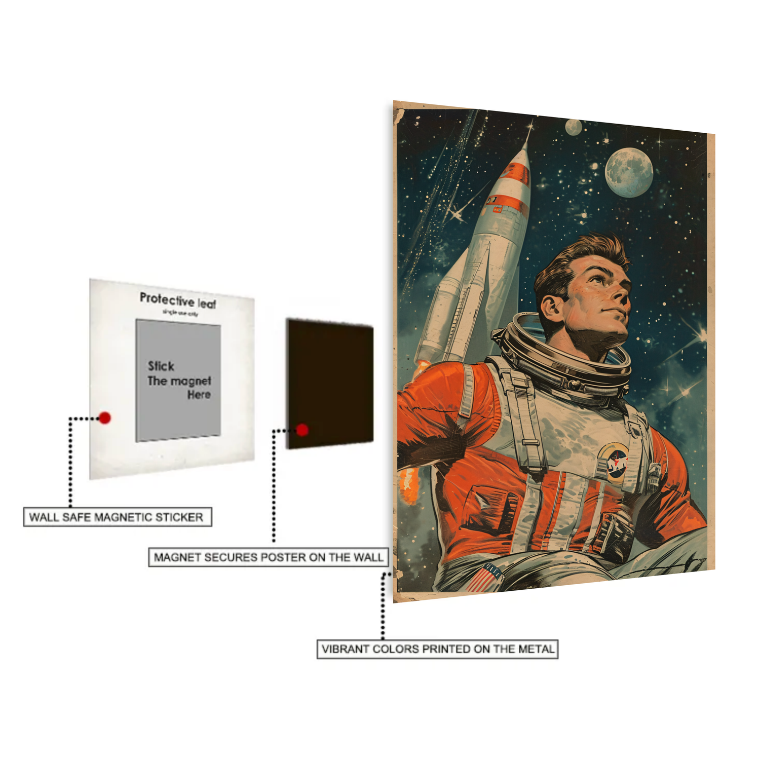 Retro Astrounat Metal Wall Posters | Premium, Waterproof & Magnet-Mounted Art