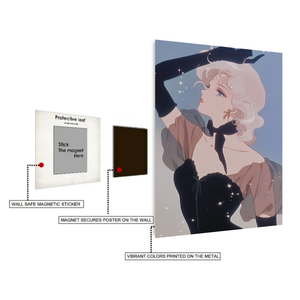 Retro White Lady in Black Dress Metal Posters | Premium, Waterproof & Magnet-Mounted Art