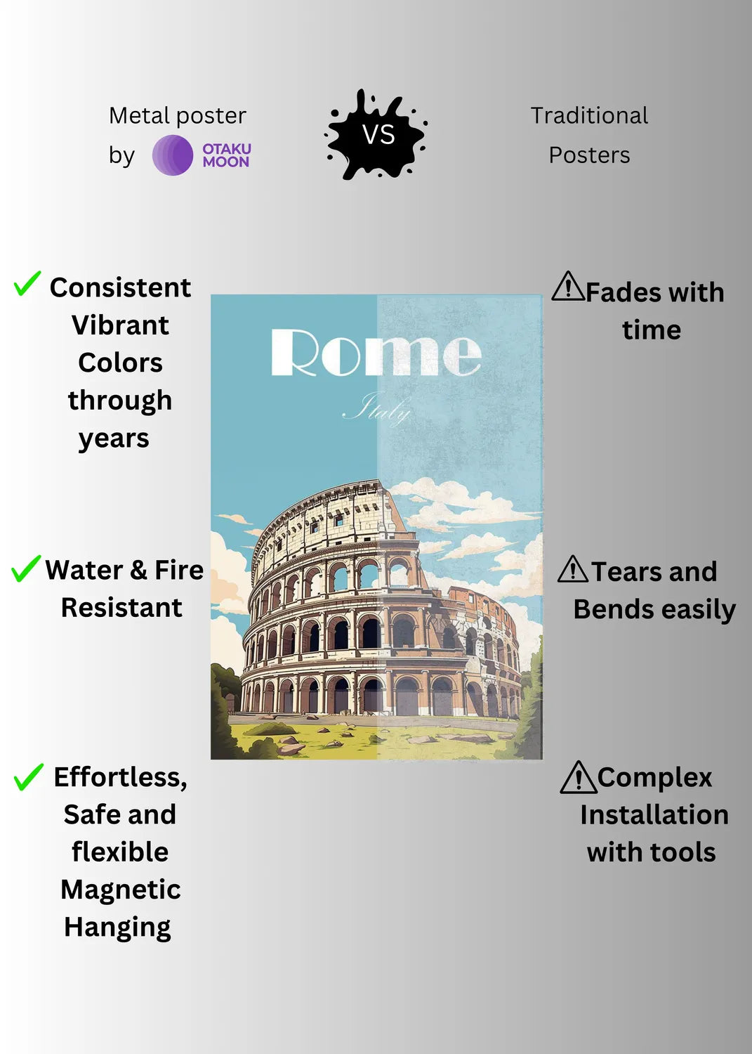 Rome Italy Art Metal Posters | Premium, Waterproof & Magnet-Mounted Art